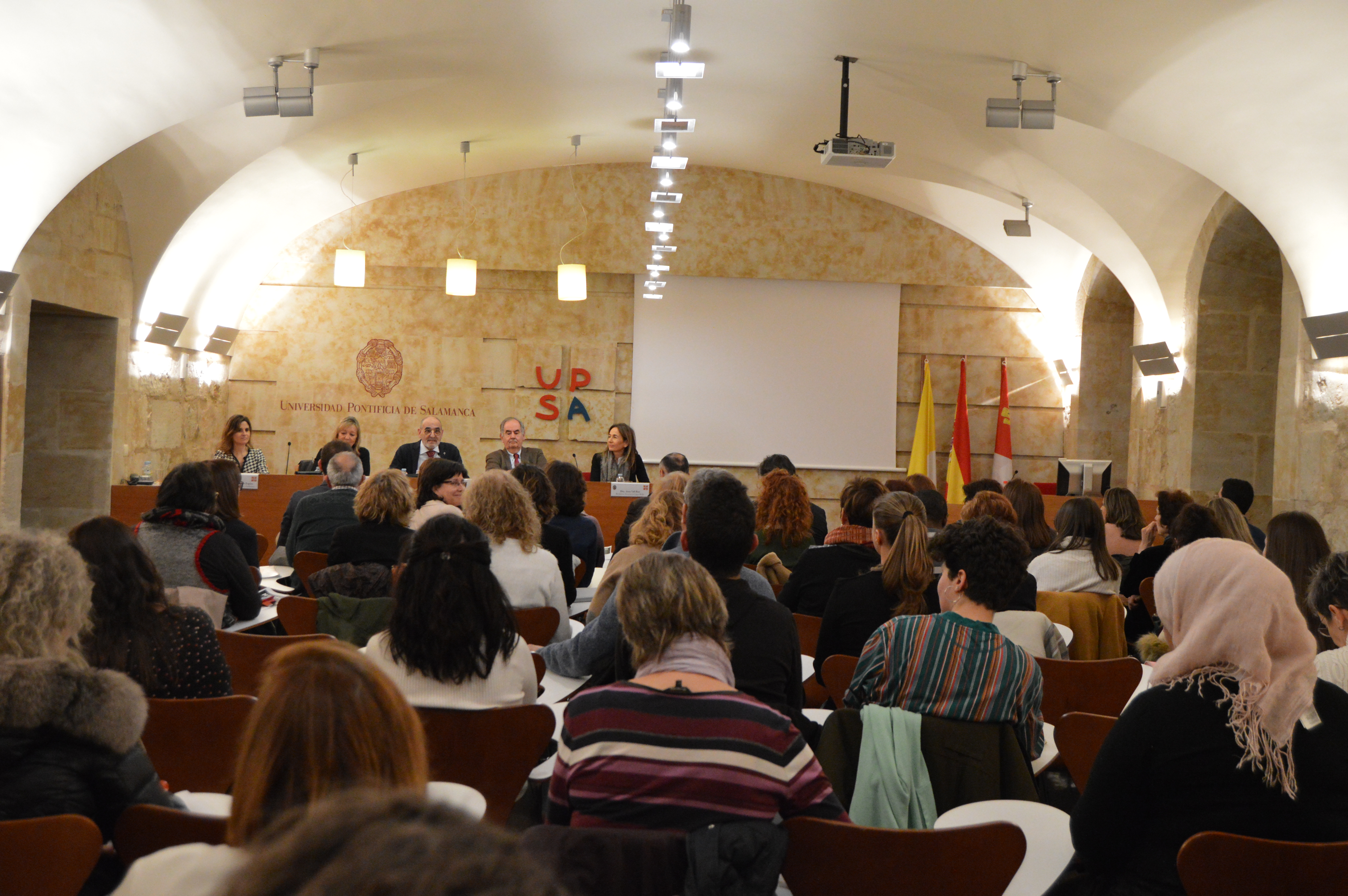 Entre las actividades programadas, la Universidad Pontificia de Salamanca ha acogido la mesa redonda sobre ‘Mediación: Conflictos y Encuentros’, inaugurada por el vicerrector de Relaciones Institucionales y Comunidad Universitaria, Jacinto Núñez, junto con la concejala de Familia e Igualdad de Oportunidades, Cristina Klimowitz.