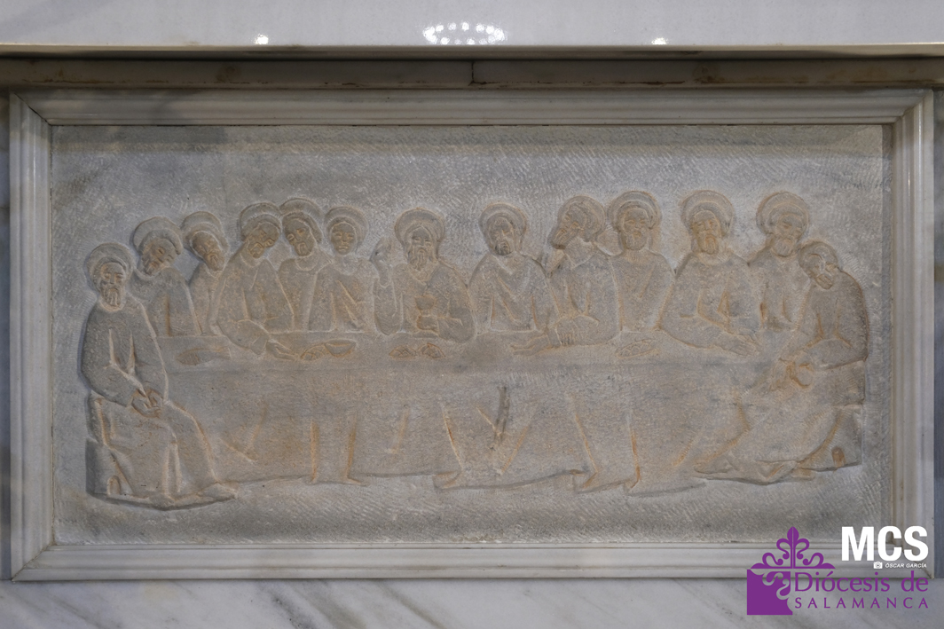 Aunque a veces pasa desapercibido, junto al sagrario de la parroquia de María Auxiliadora se encuentra un relieve que representa la Santa Cena y la institución del sacramento de la eucaristía. Su autor fue el artista zamorano, aunque afincado en Salamanca desde su niñez, José Luis Núñez Solé. El director del Servicio diocesano de Patrimonio Artístico, Tomás Gil, comparte cada detalle de esta obra escultórica, como una invitación a vivir la celebración del Corpus Christi de este domingo, 2 de junio.