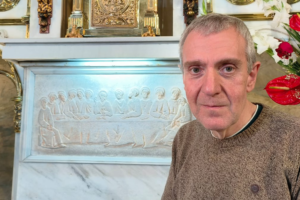 Y un detalle a tener en cuenta es que uno de los apóstoles no tiene levantada la cabeza, “tiene la mirada perdida y se sitúa a la izquierda de Cristo, en el extremo izquierdo, que es Judas, con la bolsa del dinero escondida, que es la bolsa de la traición”. Además, es el único que no tiene el nimbo (aureola), como tradicionalmente se representa. También hay dos apóstoles que extienden sus manos hacia arriba, “hacia el pan y el vino, es decir, hacia el cuerpo y la sangre de Cristo”. Sus manos están abiertas y puestas hacia arriba, “para recibir los dones de Cristo para comunión y la adoración, porque la presencia del Cuerpo de Cristo, como participamos de ella los cristianos, es, fundamentalmente, comulgando, comiendo el mismo pan y bebiendo el mismo vino”.