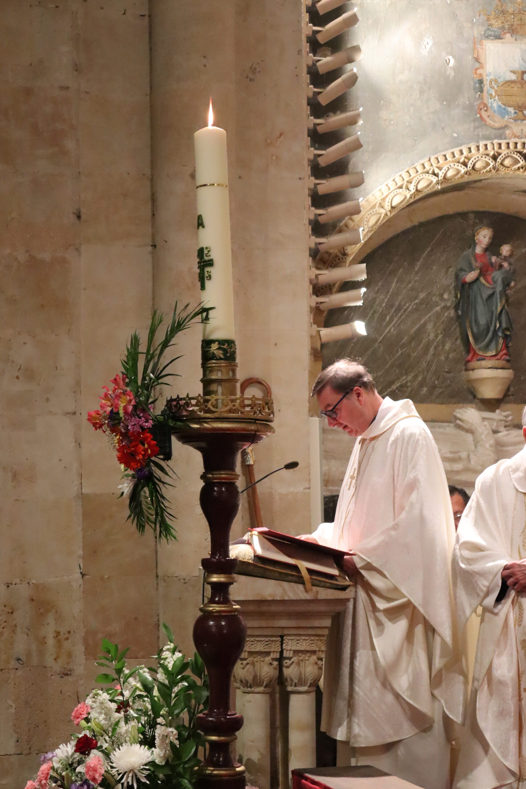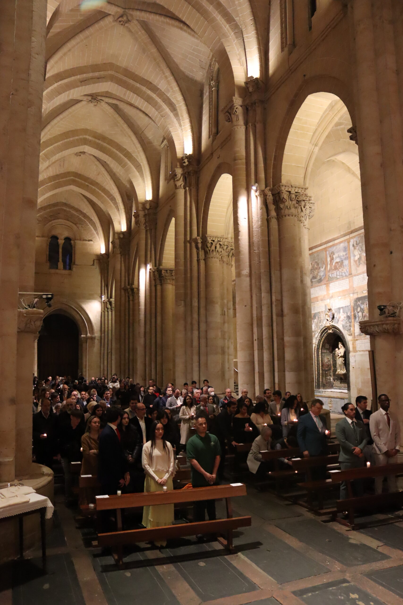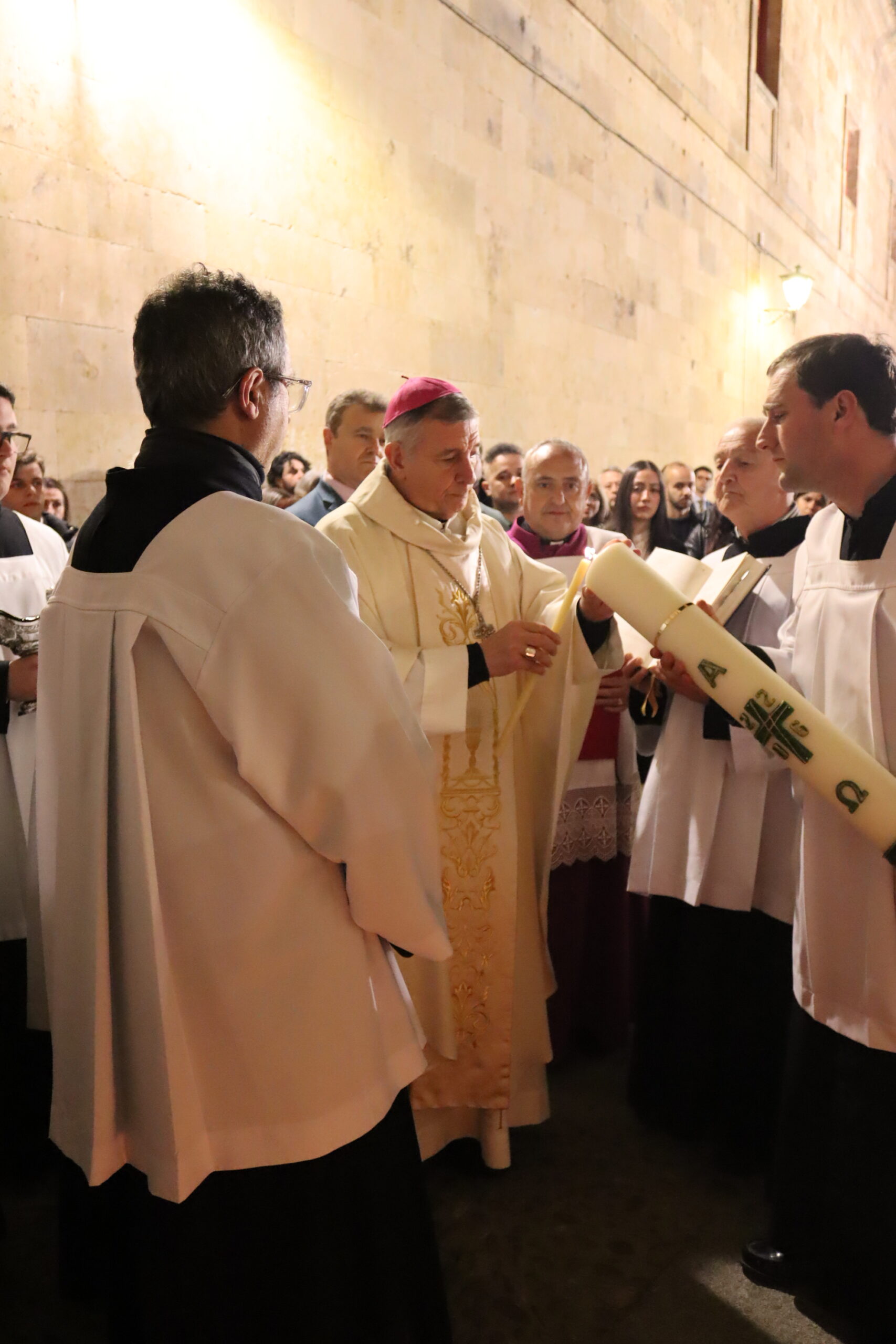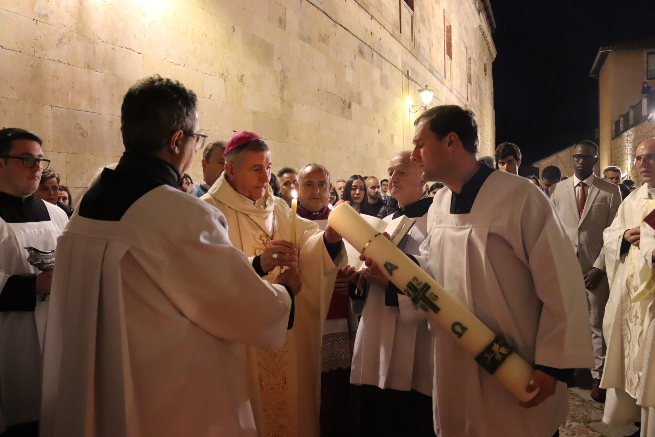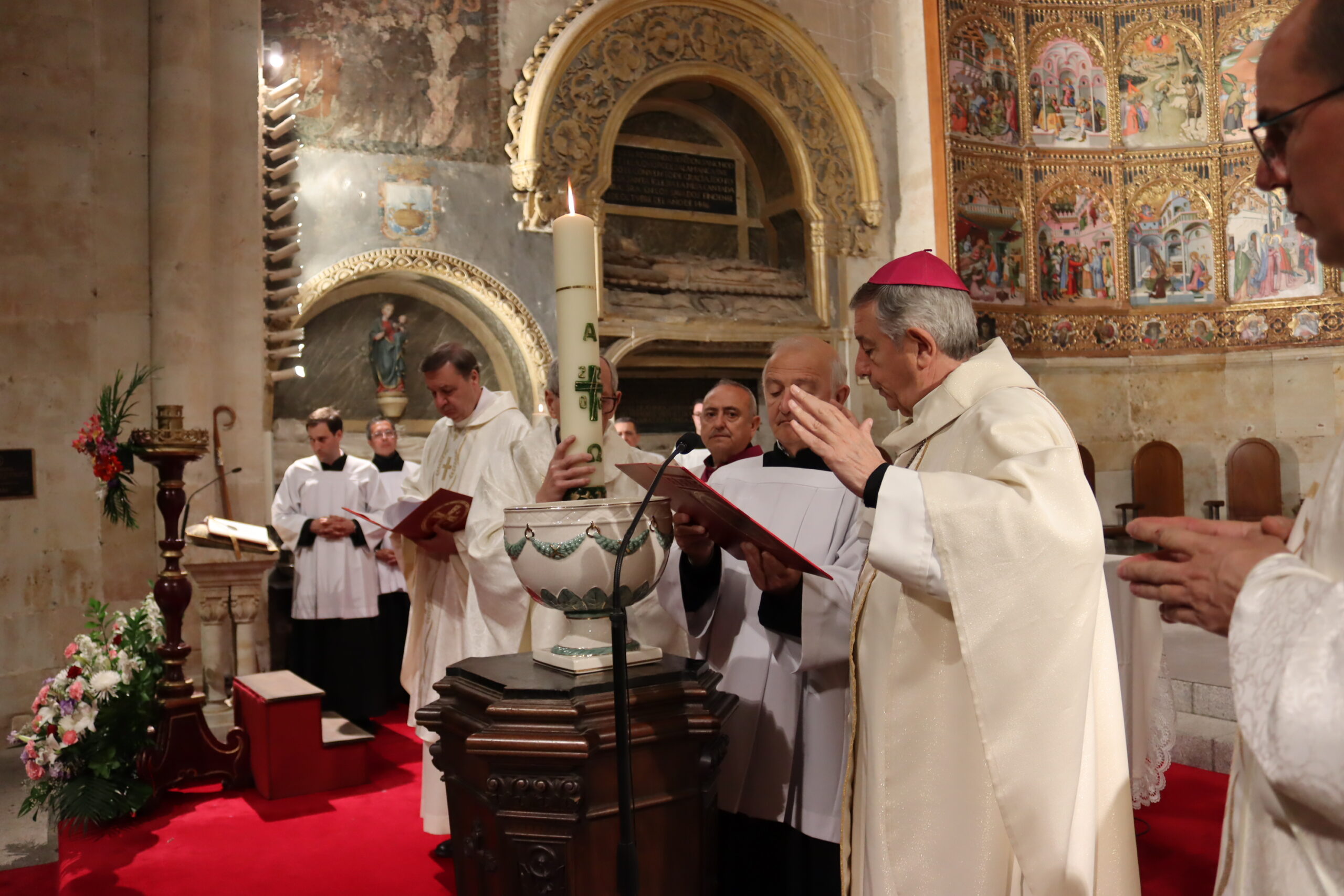 La Catedral Vieja de Salamanca acogió en la noche del Sábado Santo la solemne Vigilia Pascual, centro del año litúrgico, en la que la Iglesia celebra la Resurrección de Jesucristo, victoria de la vida sobre la muerte. La seo se llenó de fieles para vivir esta celebración que —como recordó el obispo diocesano, Mons. José Luis Retana— es verdaderamente “la fiesta de las fiestas”, porque en ella “nos jugamos todo, ya que queremos ser de Aquel que está resucitado”.