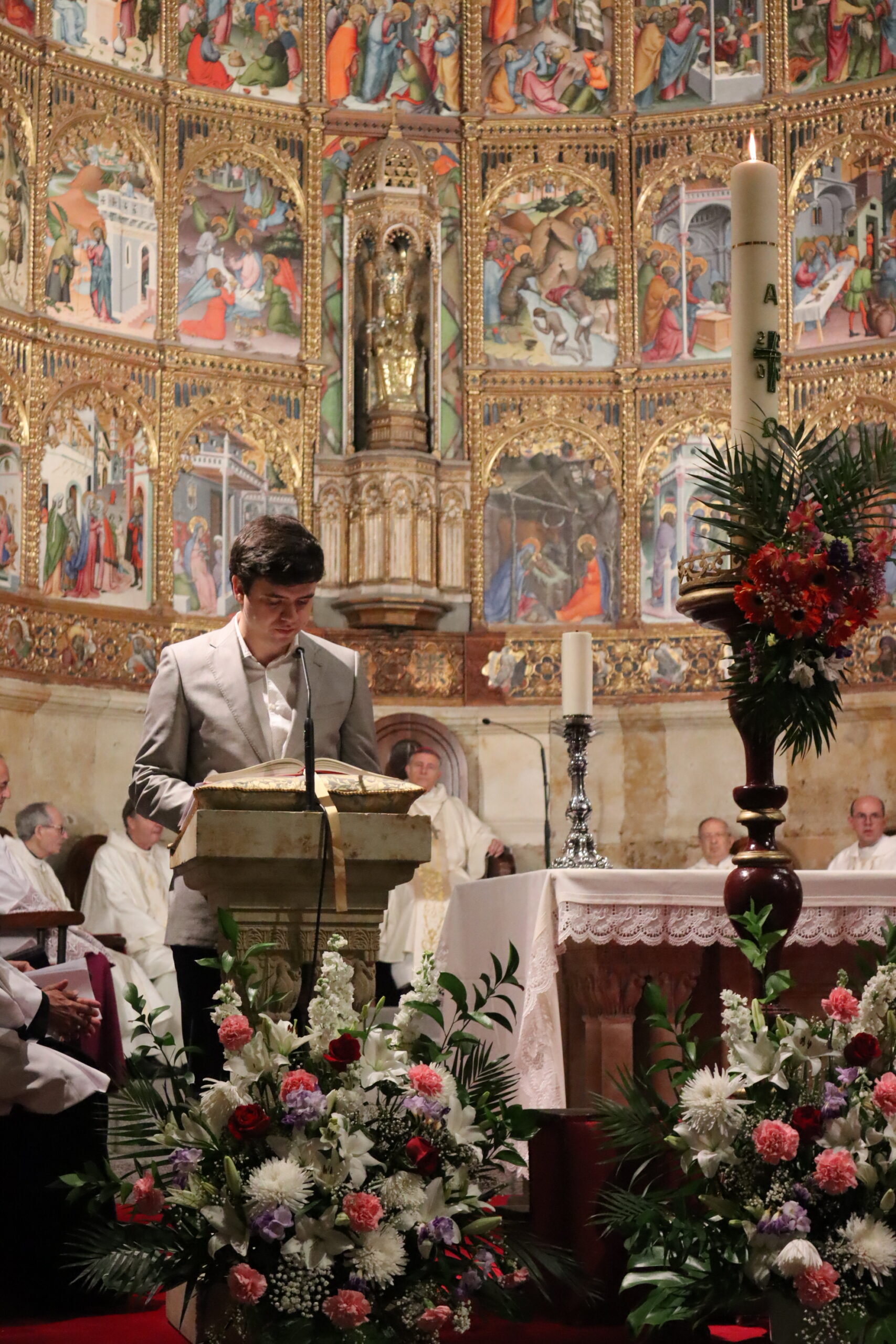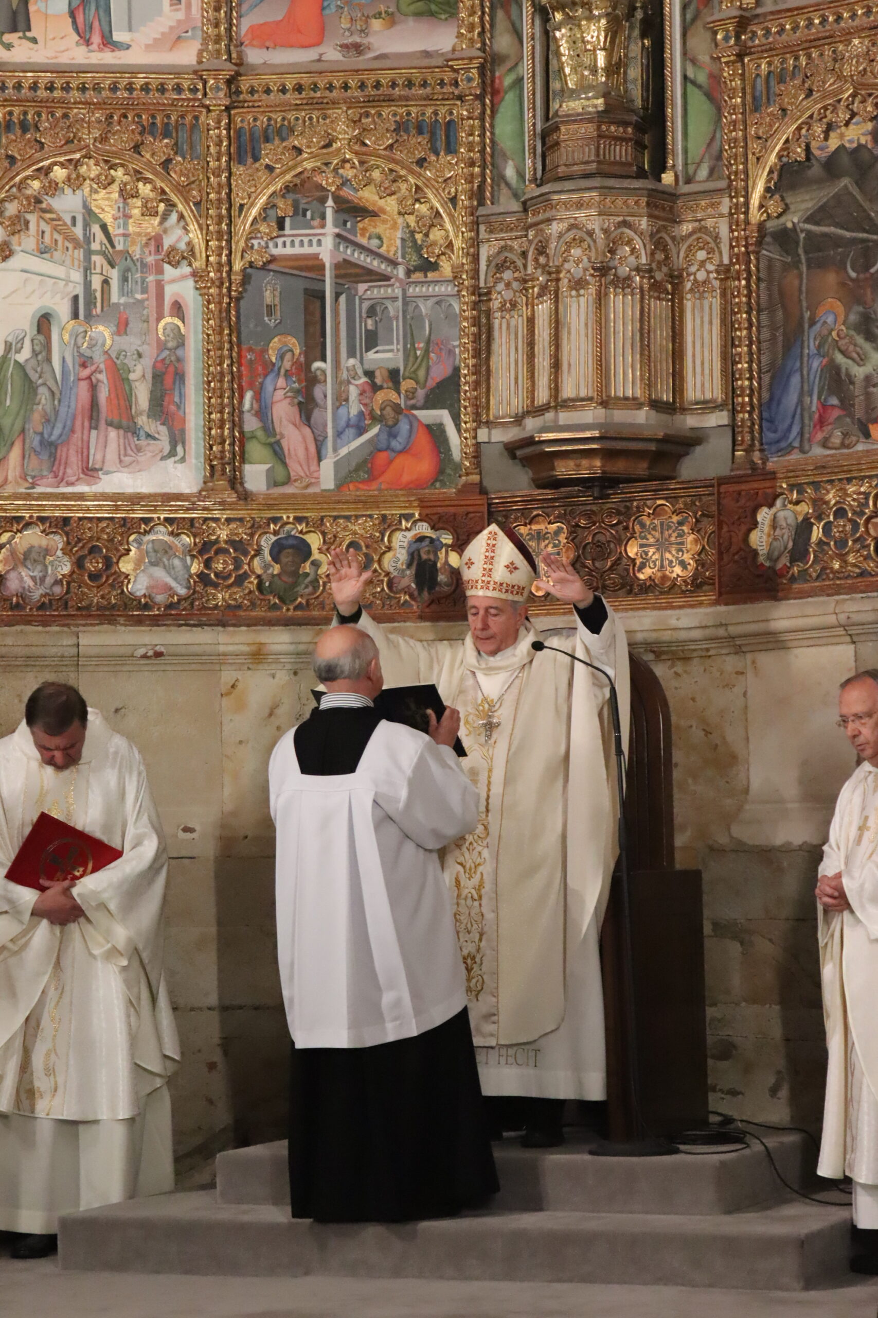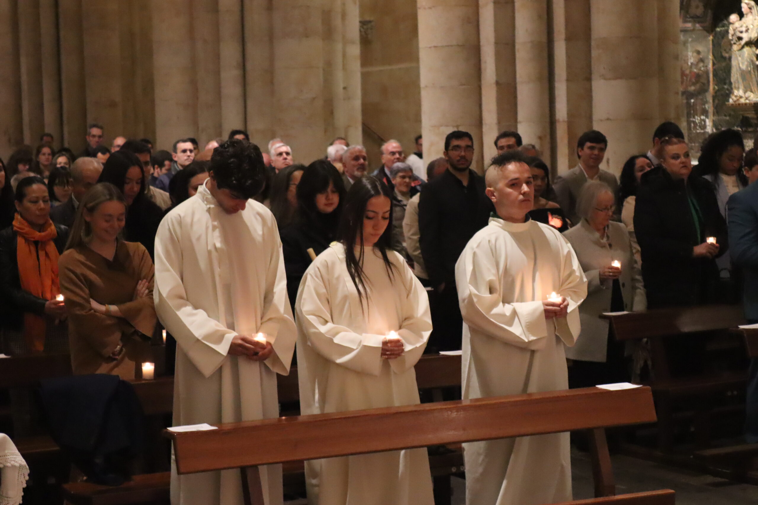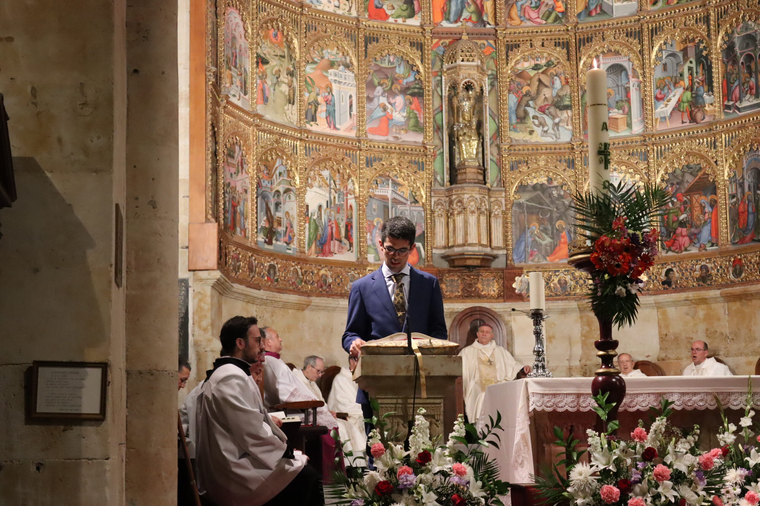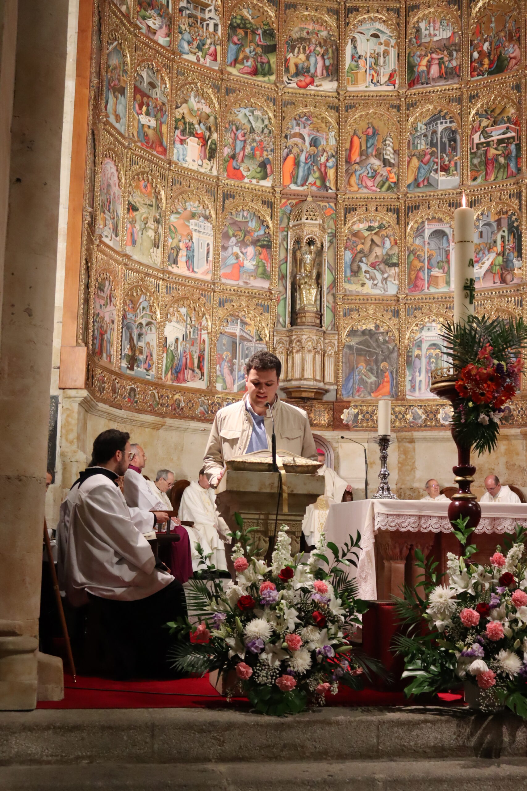 La Catedral Vieja de Salamanca acogió en la noche del Sábado Santo la solemne Vigilia Pascual, centro del año litúrgico, en la que la Iglesia celebra la Resurrección de Jesucristo, victoria de la vida sobre la muerte. La seo se llenó de fieles para vivir esta celebración que —como recordó el obispo diocesano, Mons. José Luis Retana— es verdaderamente “la fiesta de las fiestas”, porque en ella “nos jugamos todo, ya que queremos ser de Aquel que está resucitado”.