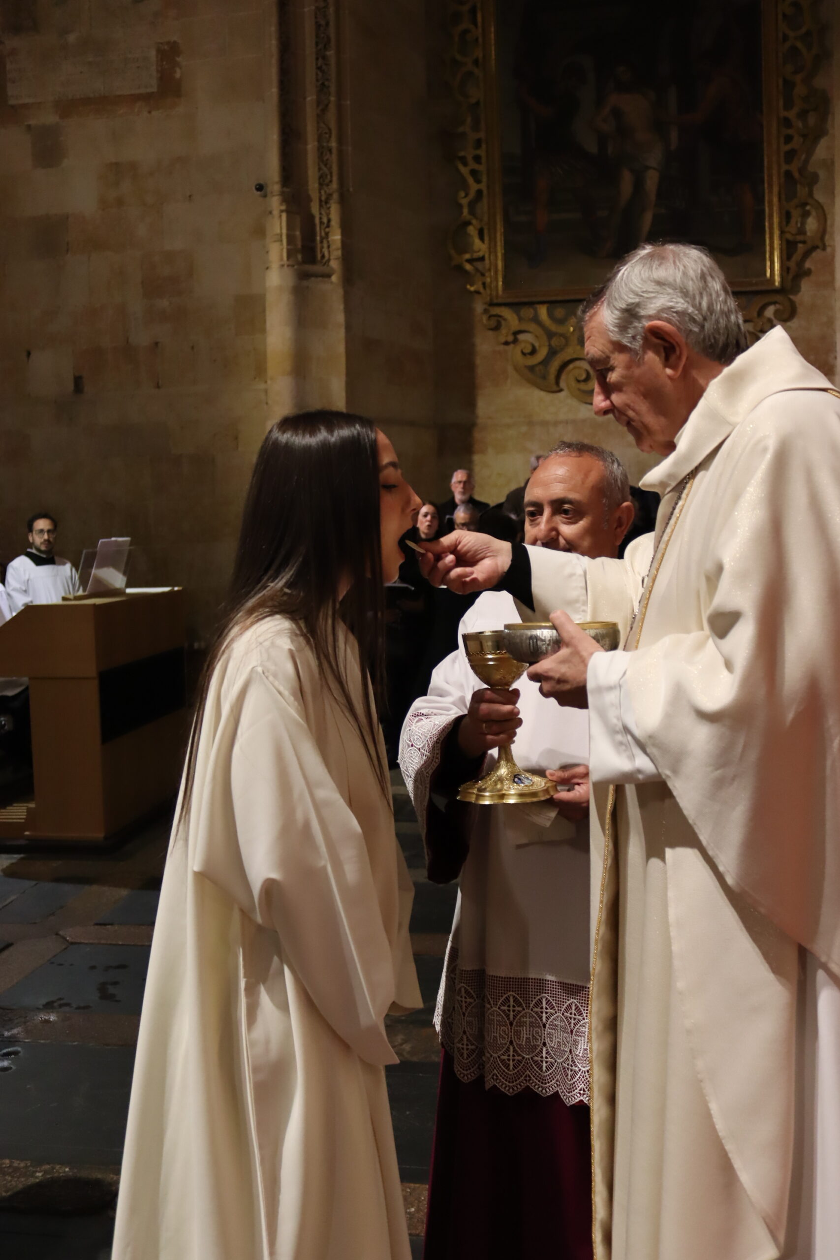 La celebración continuó con la liturgia eucarística, en la que los nuevos cristianos participaron por primera vez en la mesa del Señor, culminaba así su proceso de iniciación, incorporándose plenamente a la Iglesia, la gran familia de los cristianos.