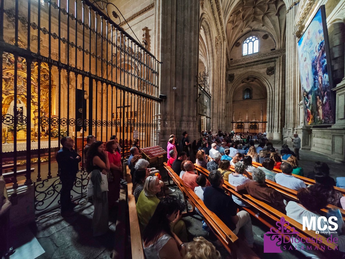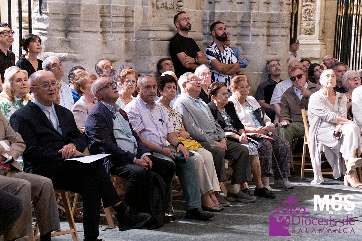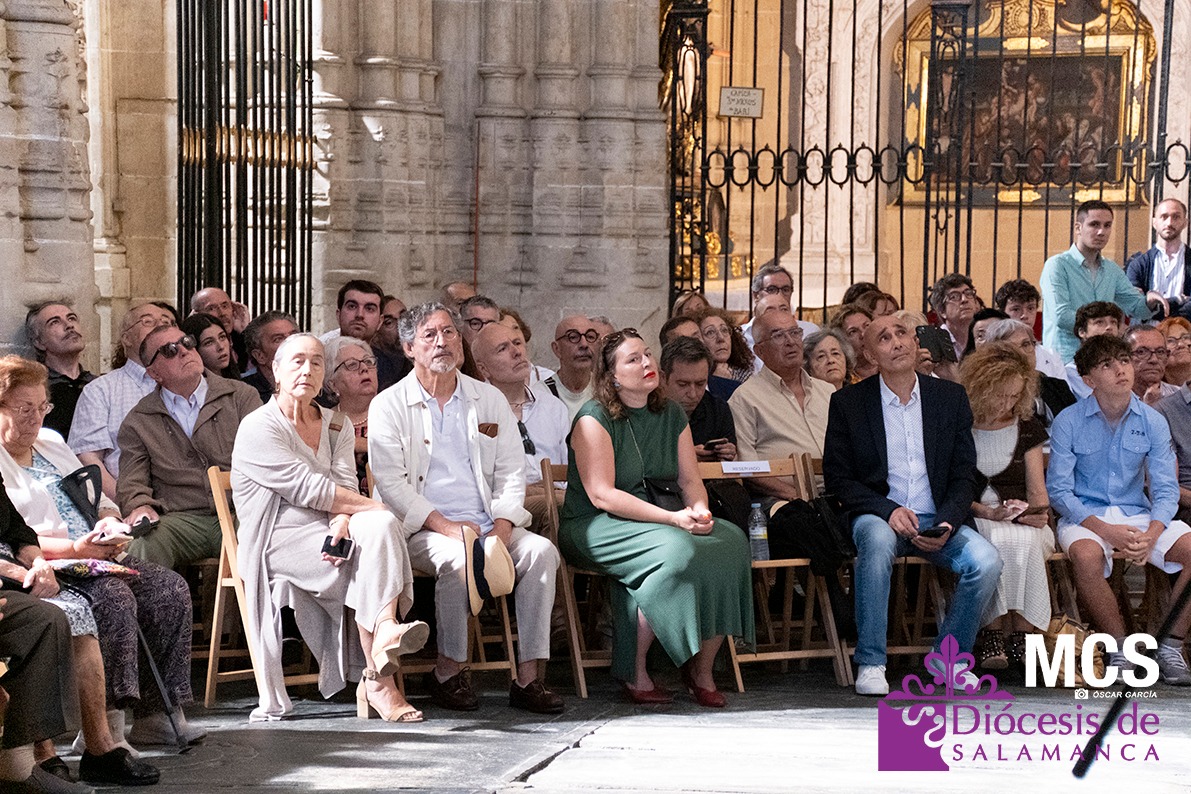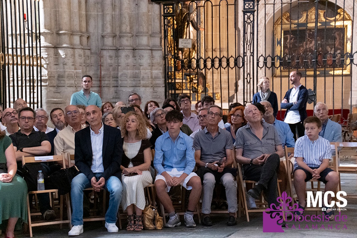 El acto de inauguración de esta “fiesta de gratitud”, como la calificó el deán del cabildo, Antonio Matilla, tuvo lugar el pasado 16 de julio en el trasaltar, donde el artista estuvo arropado por su familia, amigos y autoridades eclesiásticas y civiles. En su intervención, Matilla recordó a Daniel Sánchez, quien “se atrevió a soñar con un diálogo entre nuestra Catedral y el arte religioso contemporáneo“, y agradeció a su familia “por financiar este sueño”. El deán también expresó su aprecio a Florencio Maíllo, por abordar “con tanta pasión y maestría la realización de esta obra magnífica” y por plasmar en ella “tu alma creyente”.