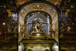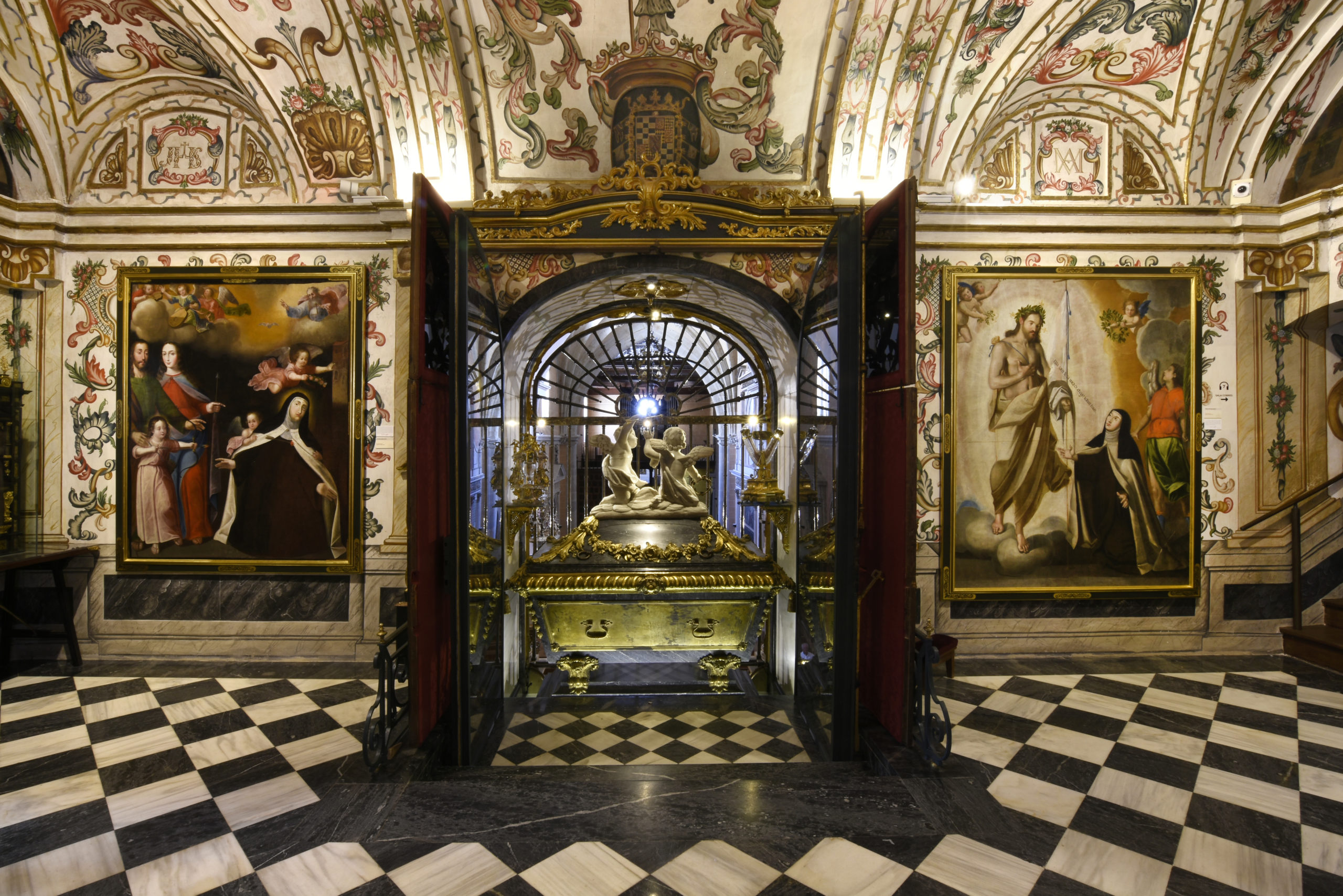 En concreto, las llaves del sepulcro son diez, tres tiene la comunidad, otras tres el Duque de Alba, y el mismo número, las del padre general en Roma, y una del arca interior de plata, el Rey.