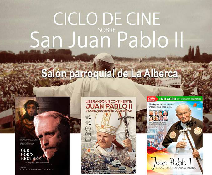 Este año se conmemora el 40º aniversario de la elección del papa Juan Pablo II con este motivo el Instituto Polaco de Cultura junto con Goya Producciones, y la Fundación Juan Pablo II, han preparado un ciclo de cine para Parroquias dedicado al gran Pontífice. El ciclo consta de tres películas: “Hermano de nuestro Dios”, “Liberando un Continente” y “El Santo que amaba España”. Las películas van a ser proyectadas en el salón parroquial de la localidad serrana de La Alberca los domingos 11 y 25 de noviembre y 23 de diciembre, a las 17.30 horas.