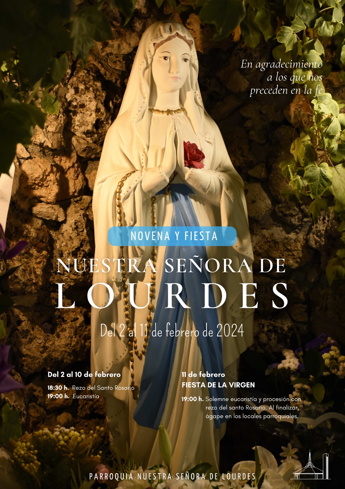 El 11 de febrero, con ocasión de la fiesta de la Virgen, se celebrará la solemne eucaristía en el templo parroquial, a las 19:00 horas. Después, los fieles participarán en la tradicional procesión con velas por las calles del barrio, mientras se reza el santo Rosario. La fiesta concluirá con un ágape fraternal en el salón parroquial.