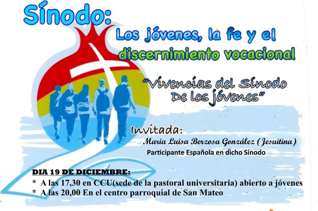 María Luisa Berzosa, jesuitina, es la única religiosa española que ha participado el pasado mes de octubre en el Sínodo de los Obispos “Los Jóvenes, la fe y el dicernimiento vocacional”. El miércoles 19 de diciembre ofrecerá sus vivencias a los jóvenes de Pastoral universitaria y a los fieles de la Unidad pastoral San Mateo-La Anunciación “sobre el que ha sido el gran evento eclesial del año.