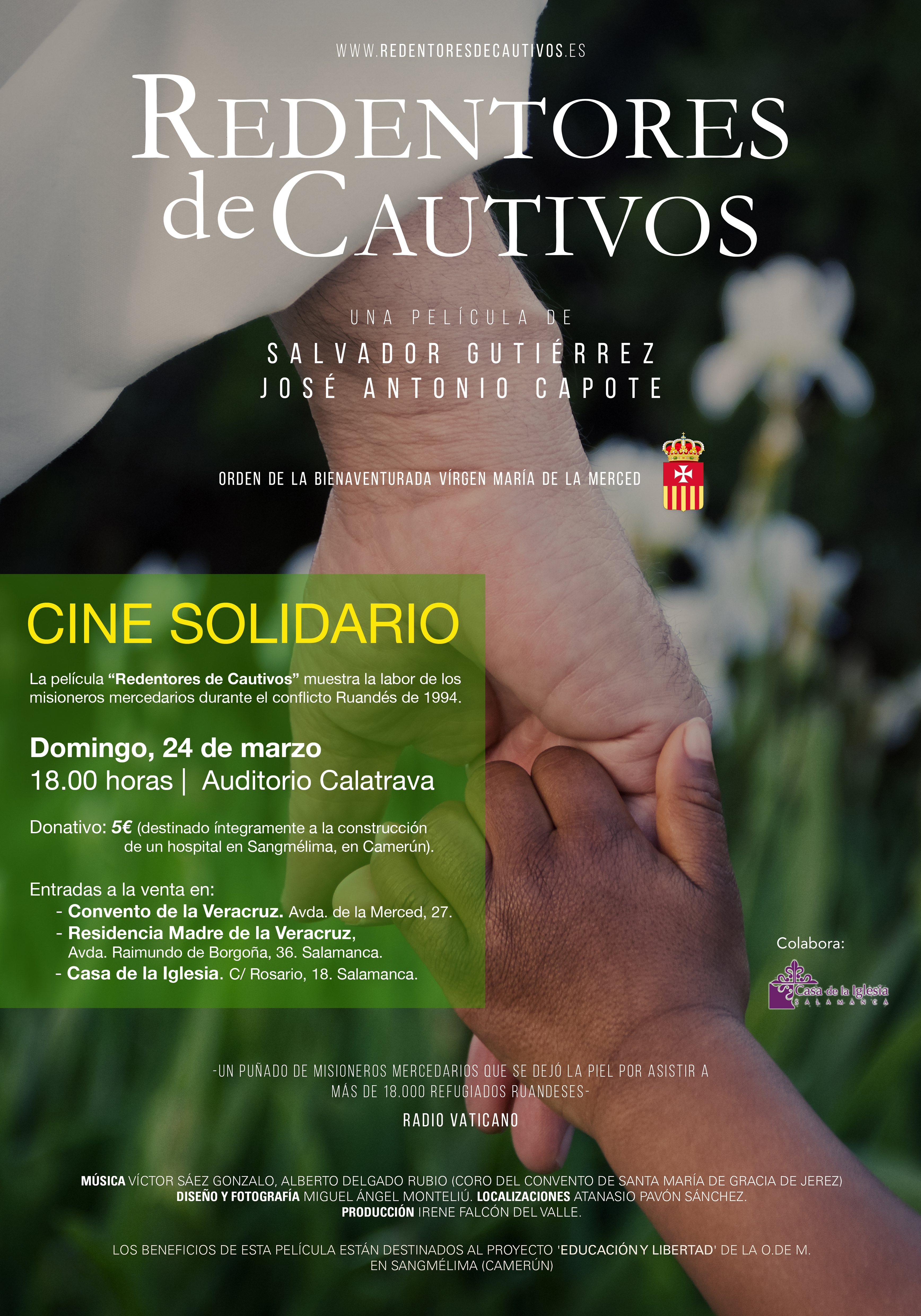 El Auditorio Calatrava de Salamanca acogerá el próximo 24 de marzo, a las 18.00 horas, la proyección de: “Redentores de Cautivos”. La película narra en primera persona las vivencias de diez frailes de la Orden de la Merced que vivieron de cerca el genocidio de Ruanda en 1994, en el que fueron asesinadas 800.000 personas y del que se cumplen ahora 25 años. Estos misioneros fueron galardonados con el Premio Príncipe de Asturias en 1994.