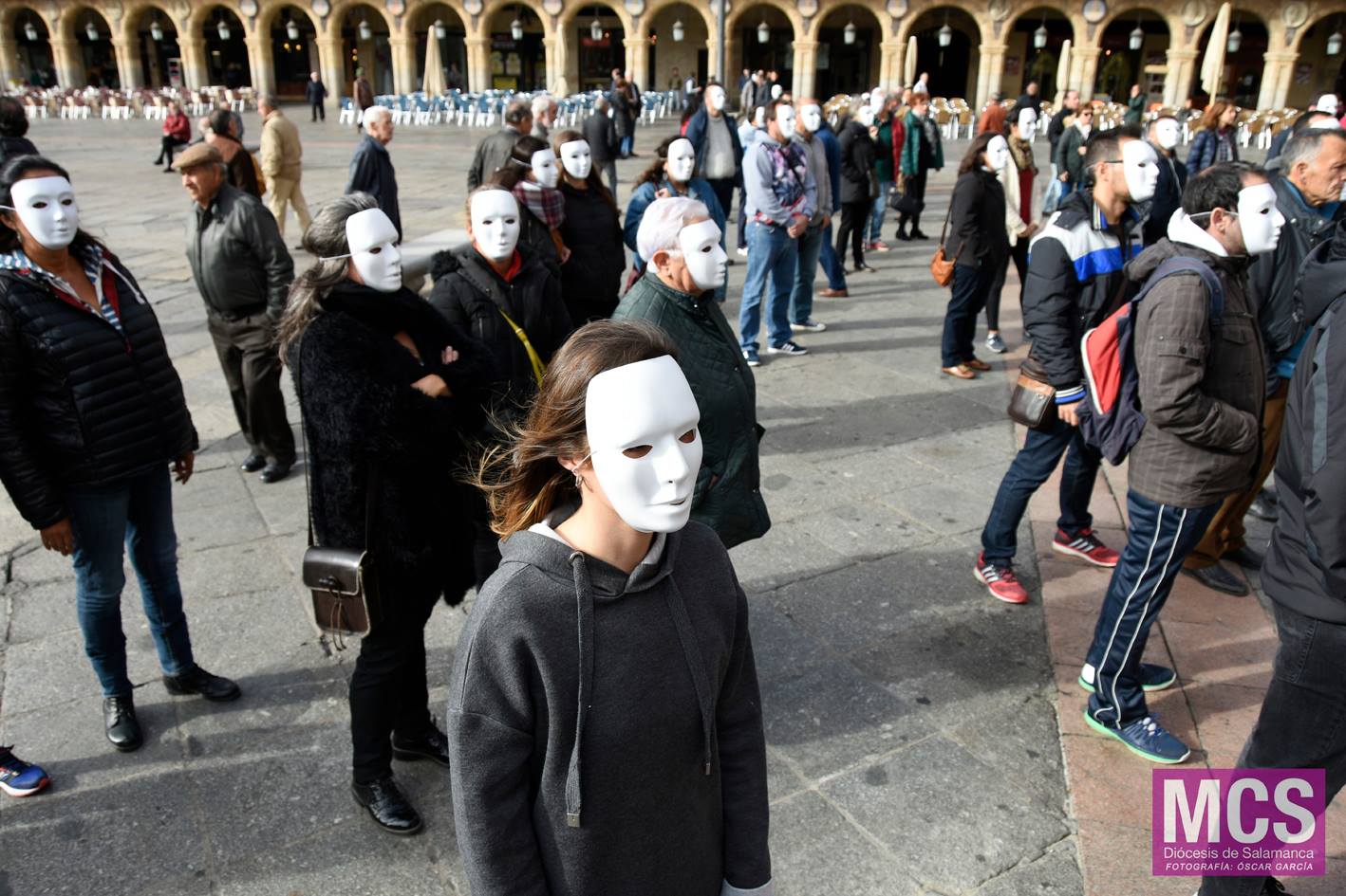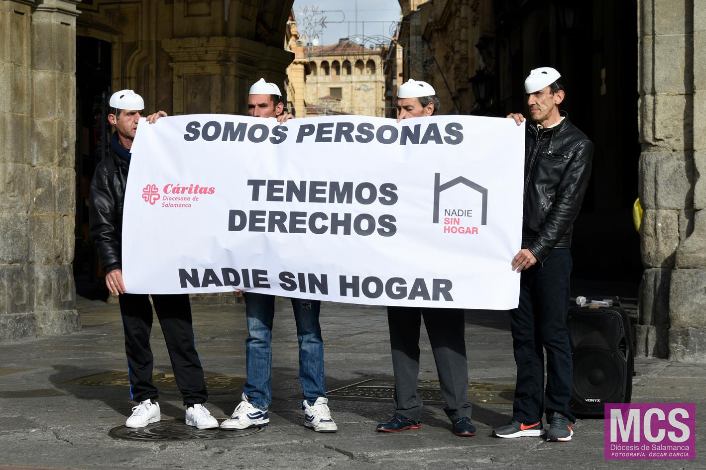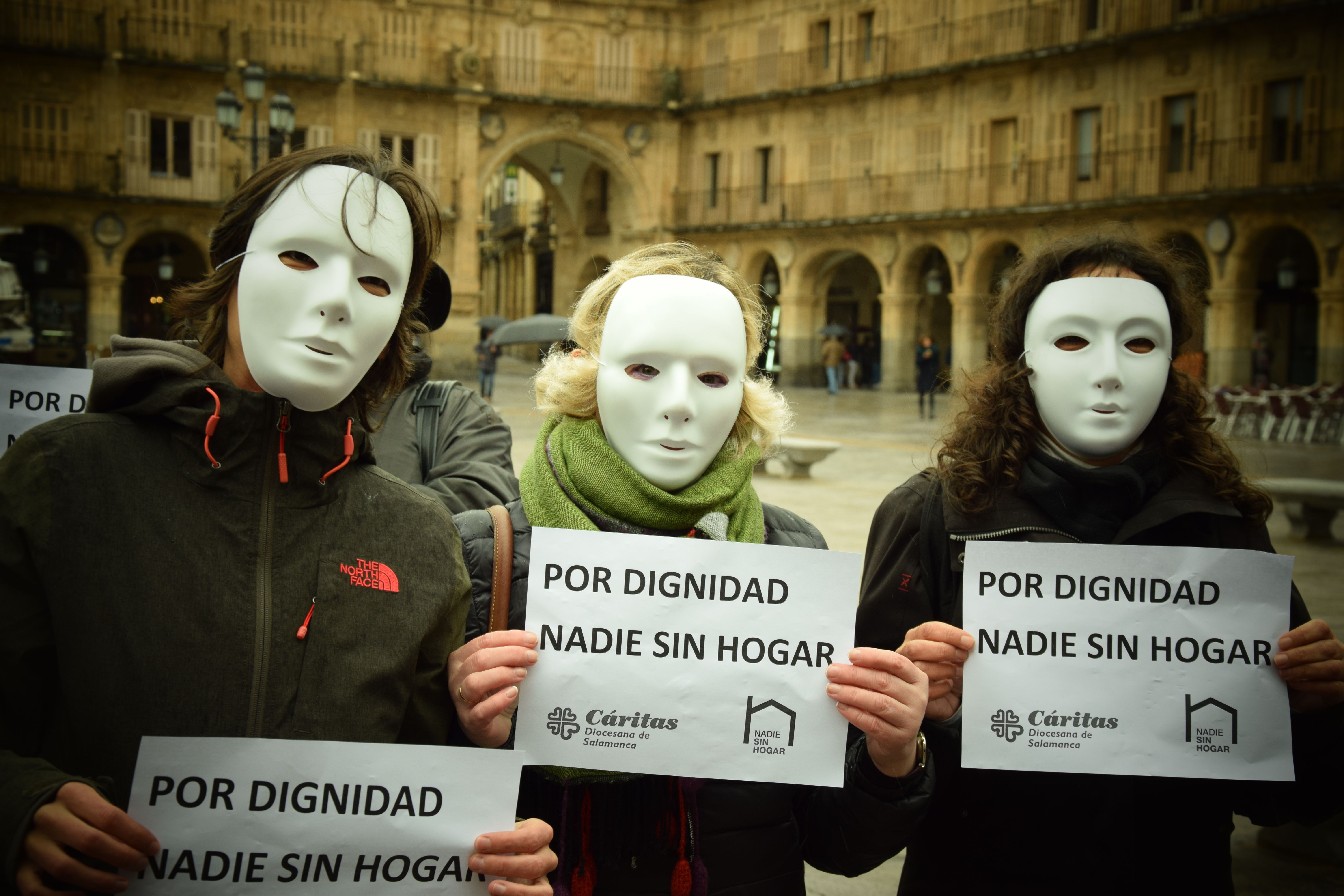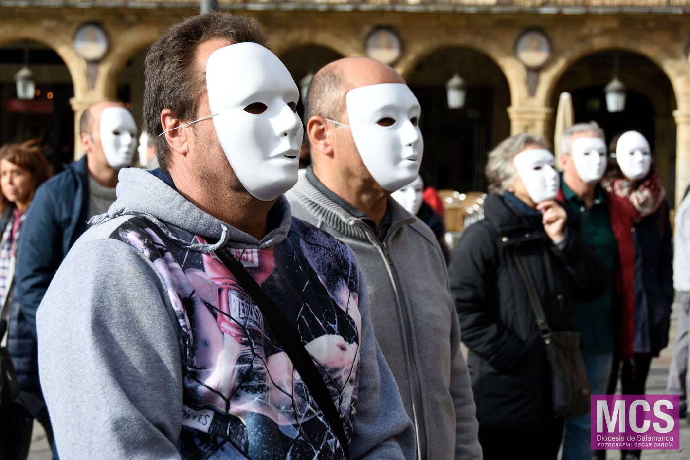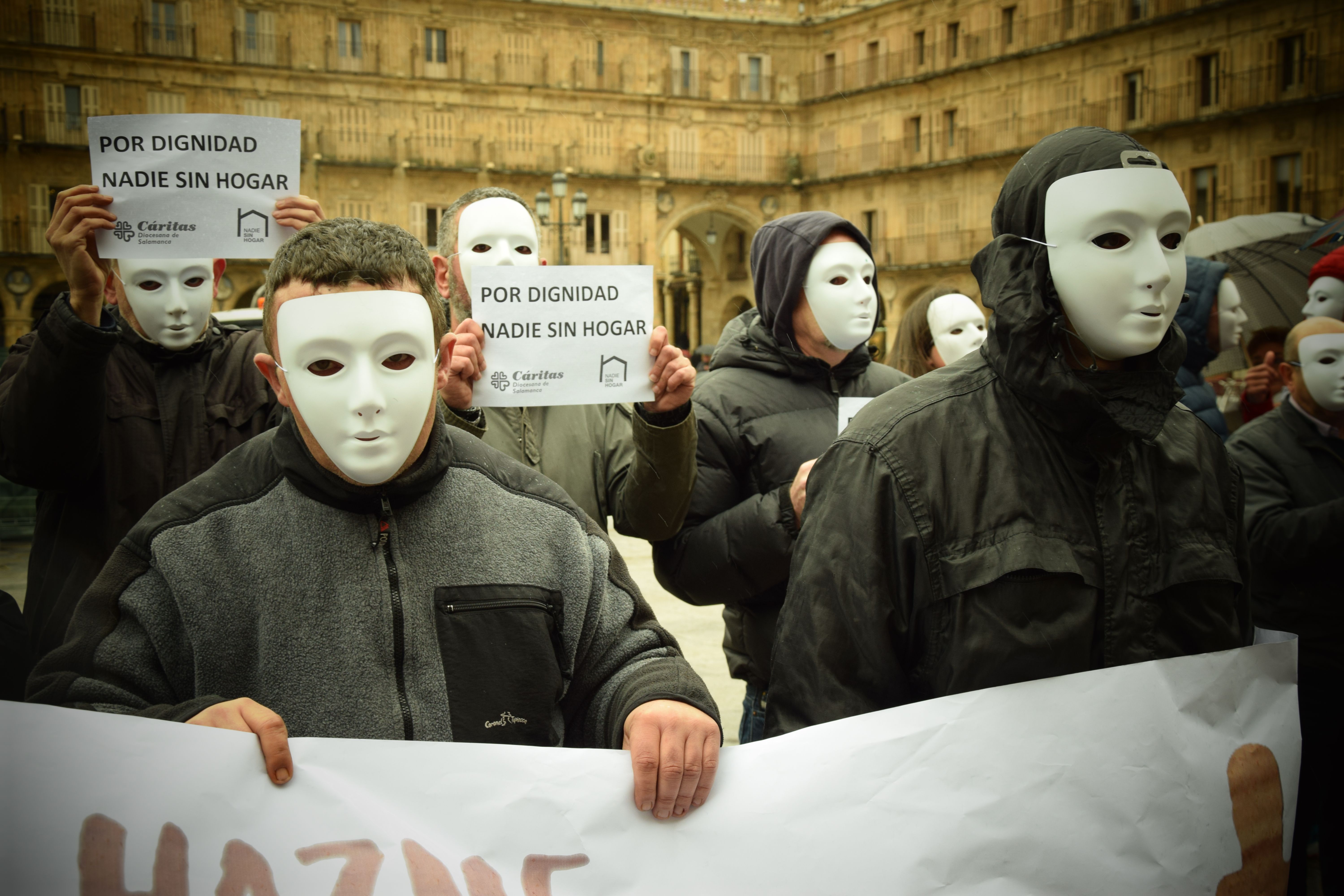 Cáritas diocesana de Salamanca convocó a participar en un flashmob de apoyo a las Personas sin hogar, el pasado jueves 23 de noviembre, a las 12.00 del mediodía en la Plaza Mayor de Salamanca. Un acto cargado de simbolismo con el que se pretendió dar visibilidad a la realidad de las personas sin hogar y reivindicar sus derechos . Al finalizar se hizo lectura de un manifiesto.