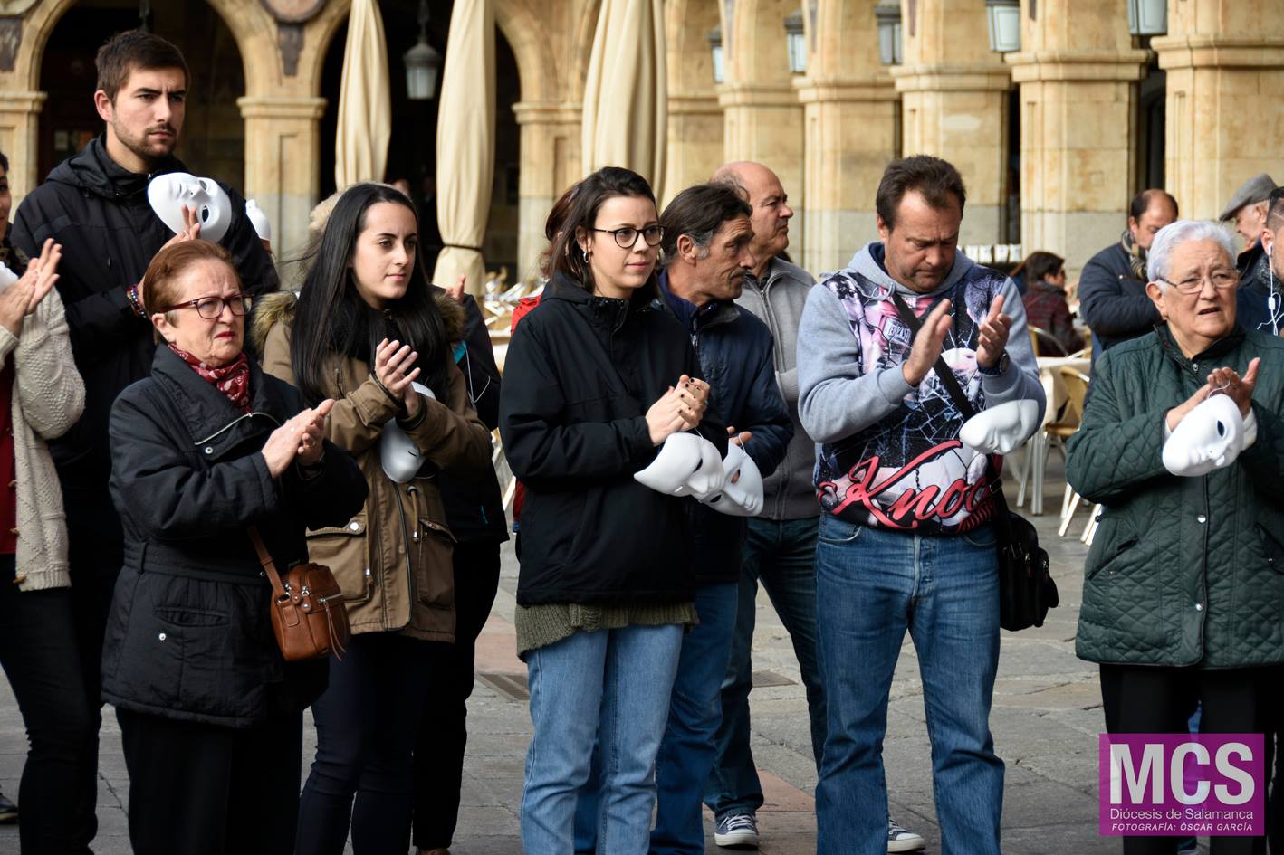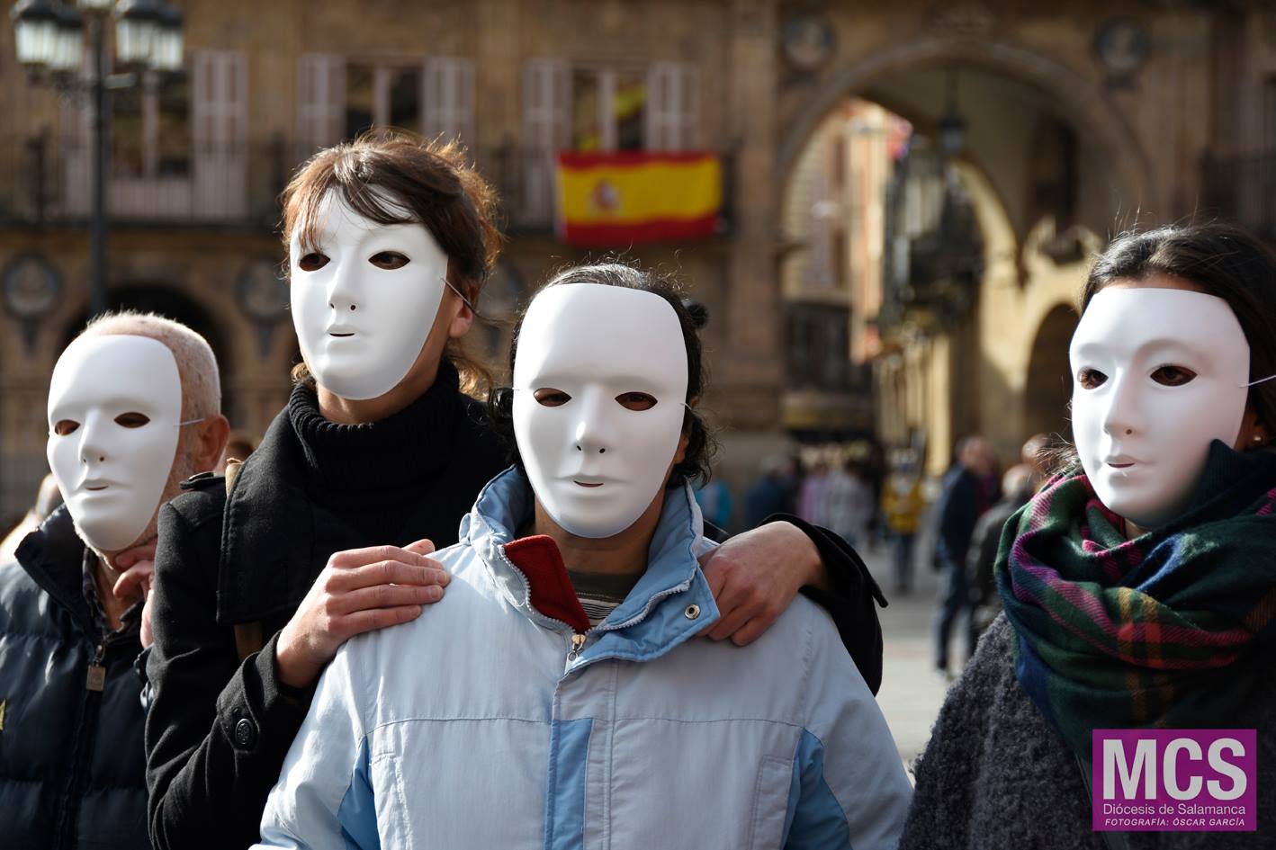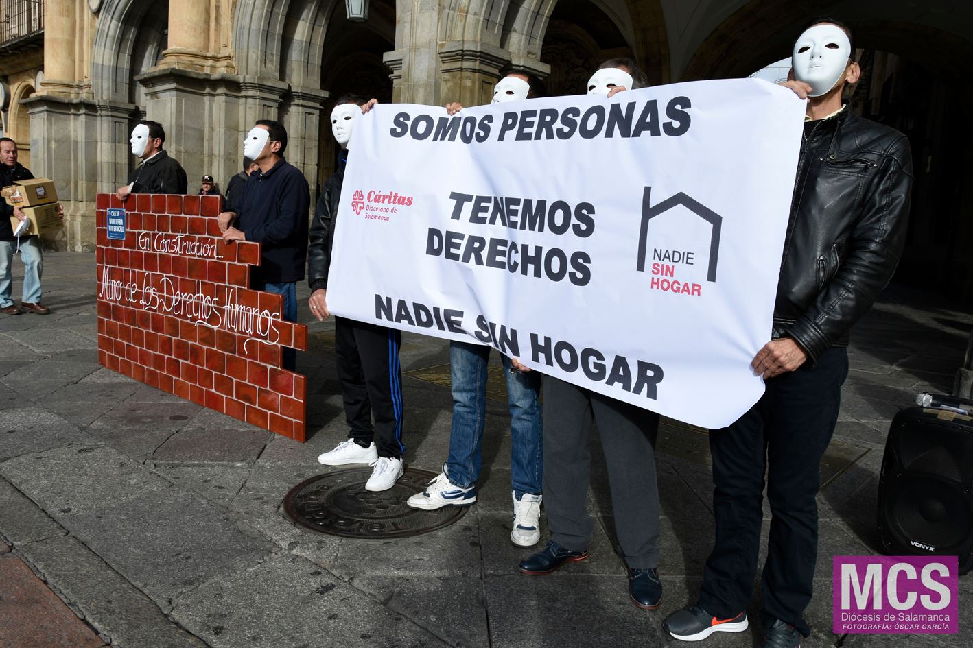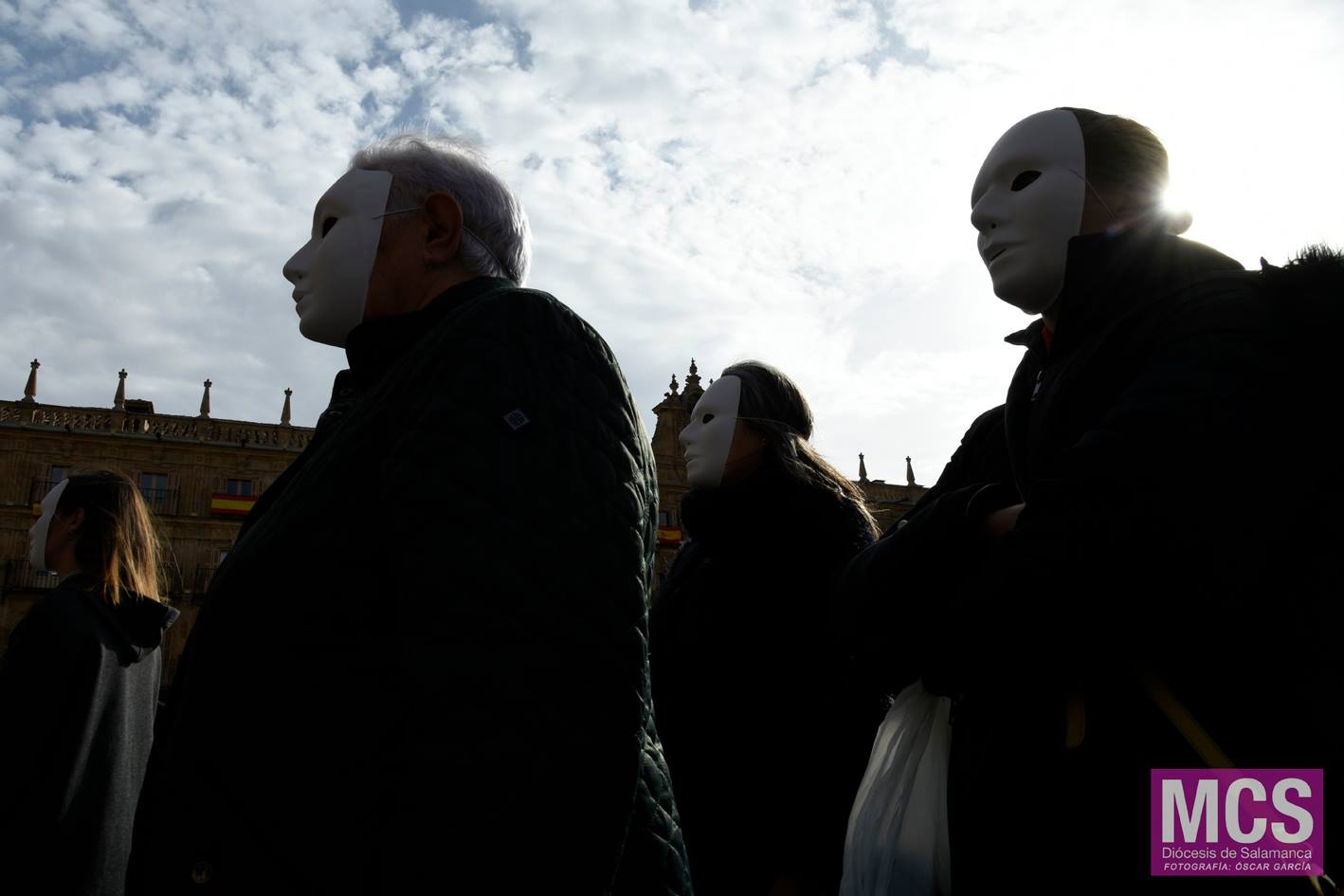 Cáritas diocesana de Salamanca convocó a participar en un flashmob de apoyo a las Personas sin hogar, el pasado jueves 23 de noviembre, a las 12.00 del mediodía en la Plaza Mayor de Salamanca. Un acto cargado de simbolismo con el que se pretendió dar visibilidad a la realidad de las personas sin hogar y reivindicar sus derechos . Al finalizar se hizo lectura de un manifiesto.