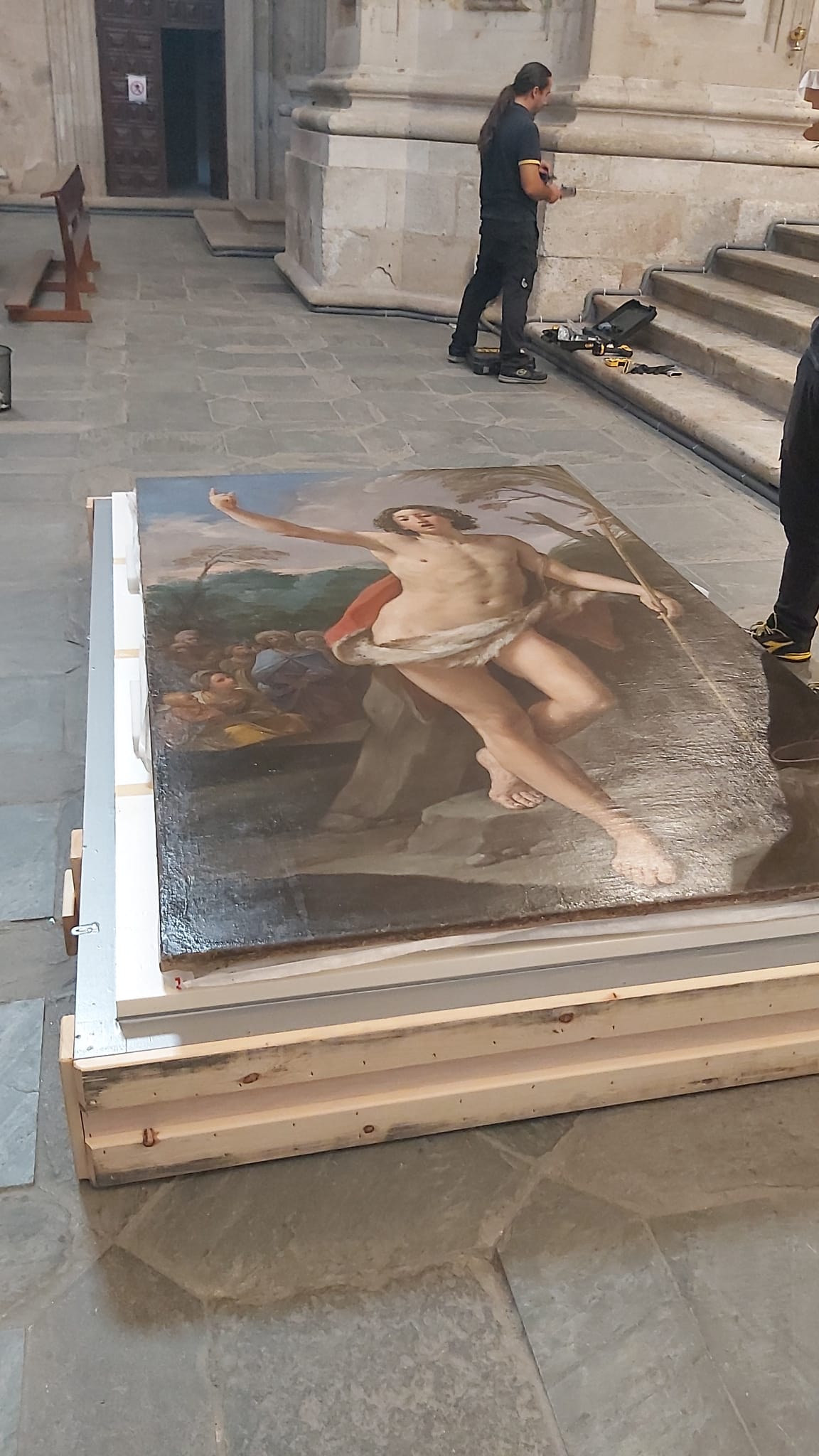 El lienzo, “La predicación de San Juan Bautista” (primer tercio del s.XVIII), de Guido Reni , ha regresado ya a la iglesia de La Purísima tras haberse exhibido durante cuatro meses en el Museo Nacional del Prado, en una muestra dedicada a este gran artista boloñés del siglo XVII, y que ha permitido a miles de visitantes apreciar de cerca su belleza.