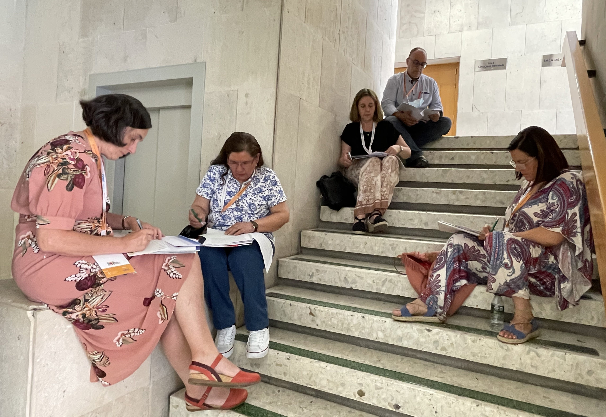 Tras la presentación de las conclusiones, los participantes, entre ellos la delegación de Salamanca, tuvieron ocasión de reflexionar a nivel personal y grupal, y dejarlo por escrito en unas cartulinas de colores preparadas para ello, para acentuar los subrayados y las lagunas.