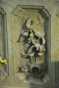 Otro ejemplo lo encontramos en la sacristía, en los arcos de los espejos, con la presencia de unos pelícanos, “a parte de otros animales que tienen más simbología más profana y popular”. Sin embargo, Benito destaca el pelícano, “con un sentido cristológico, con la prefiguración de Cristo”.