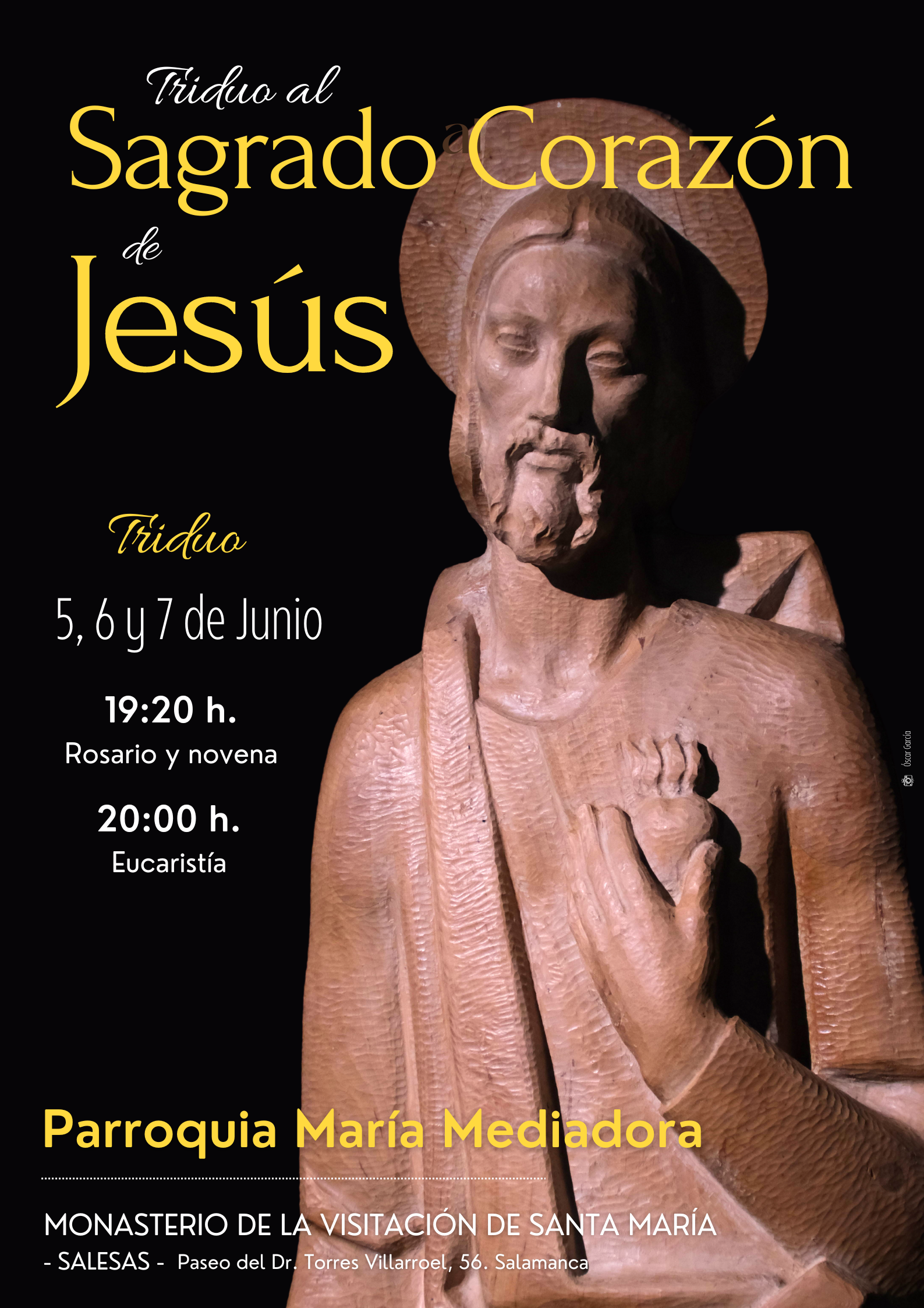 Las religiosas Salesas del Monasterio de la Visitación de Santa María, junto con la Guardia de Honor del Corazón de Jesús, han preparado un triduo solemne para honrar al Sagrado Corazón de Jesús. El triduo se llevará a cabo del 5 al 7 de junio en la parroquia de María Mediadora.