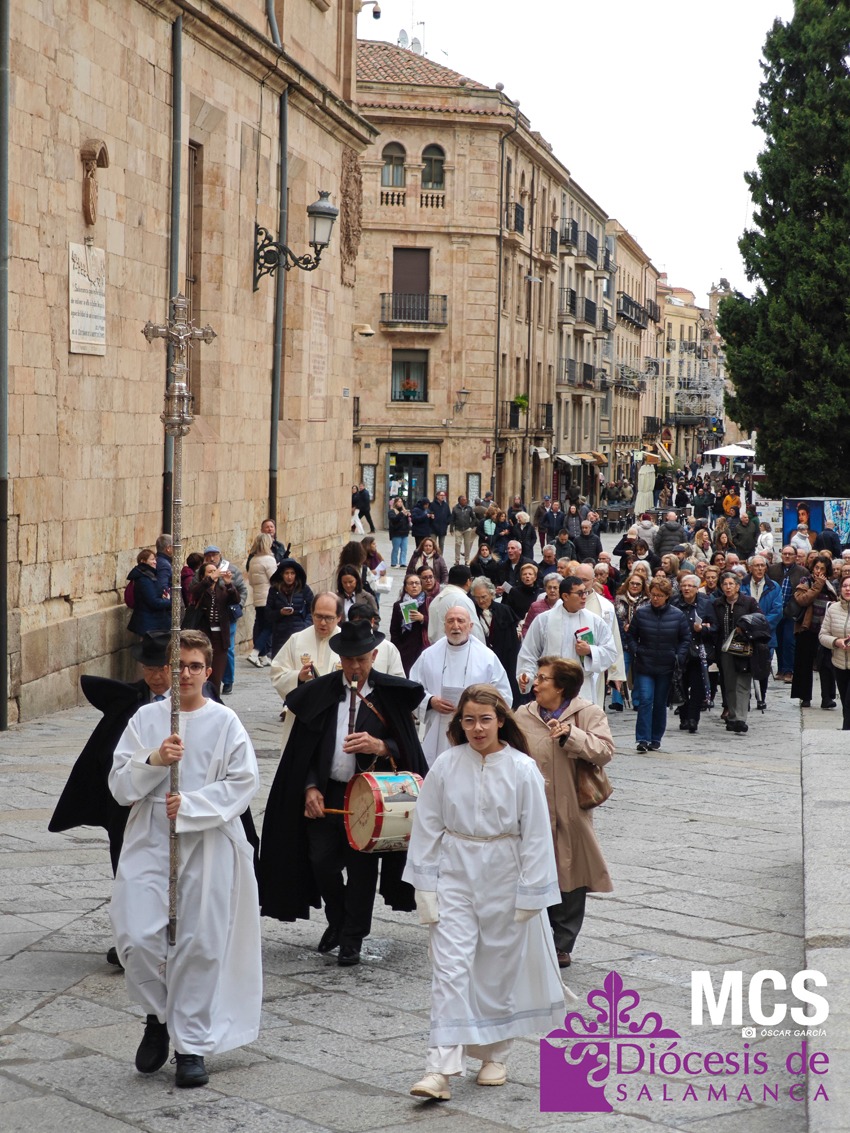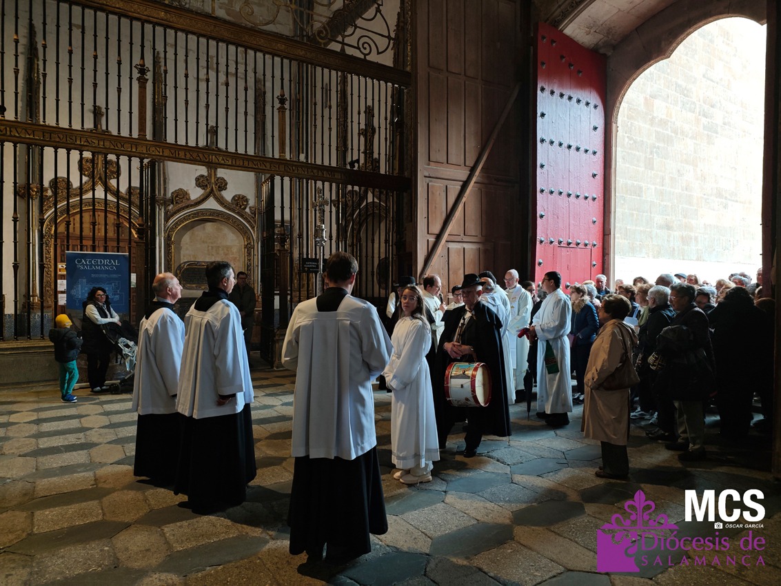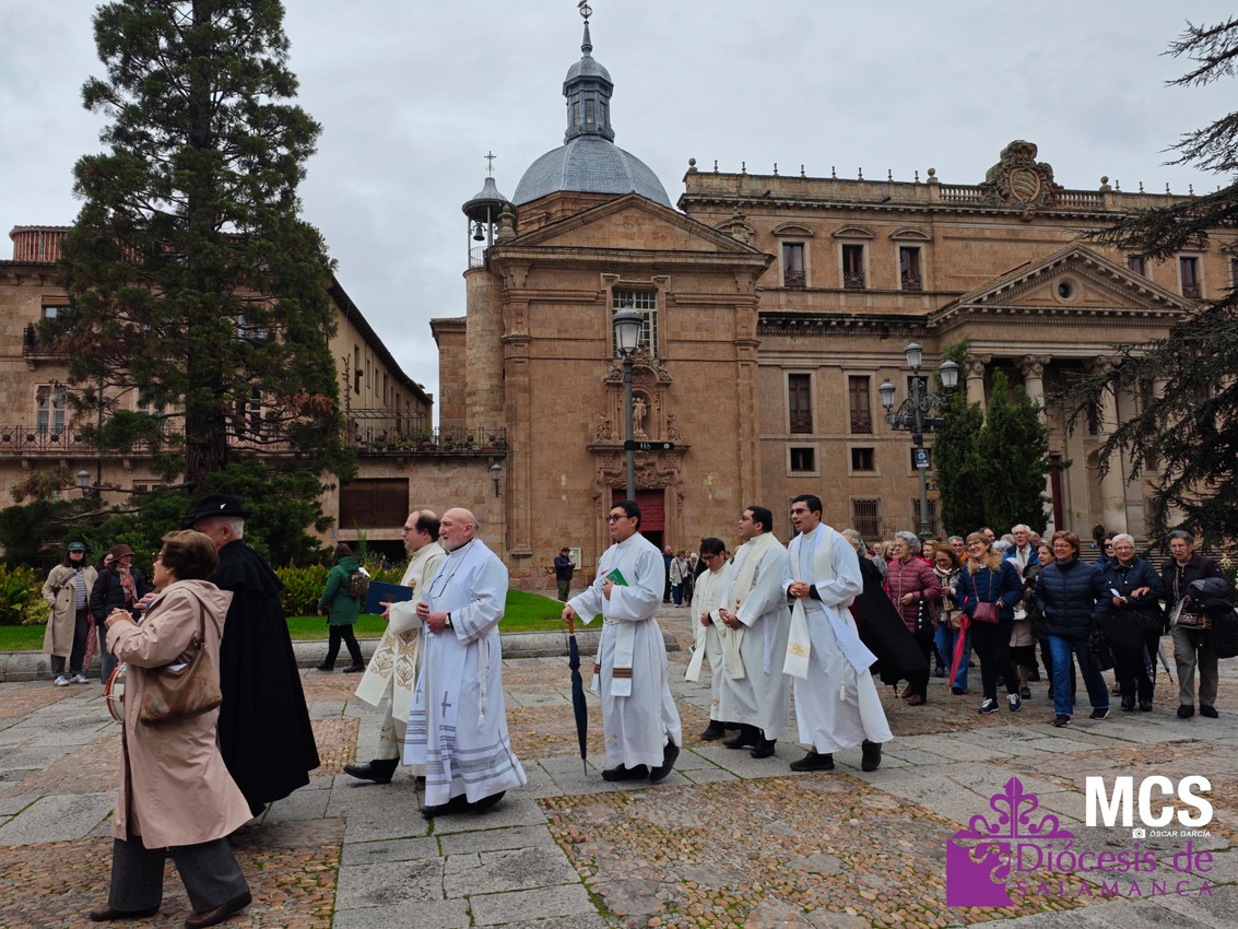 El Arciprestazgo Virgen de la Peña de Francia celebró el pasado sábado, 15 de noviembre, su peregrinación jubilar a la Catedral de Salamanca. La jornada comenzó a las 11:00 horas en la iglesia de San Sebastián, con una celebración penitencial que preparó a los fieles para adentrarse de lleno en el espíritu del Jubileo de la Esperanza. Tras ese primer momento de oración, los peregrinos emprendieron en procesión el camino hacia la Catedral, desafiando el frío y el viento propios de estas fechas.