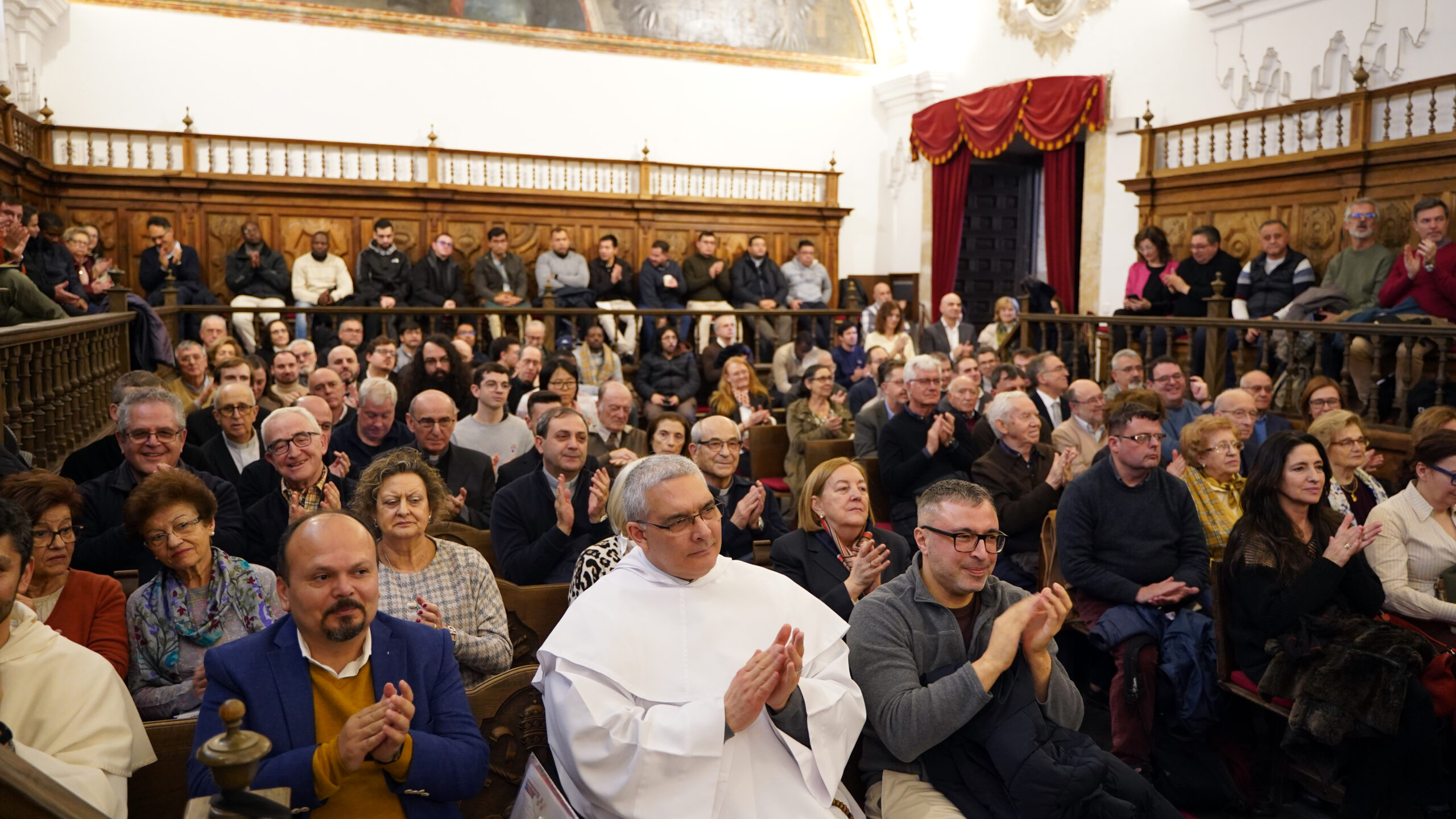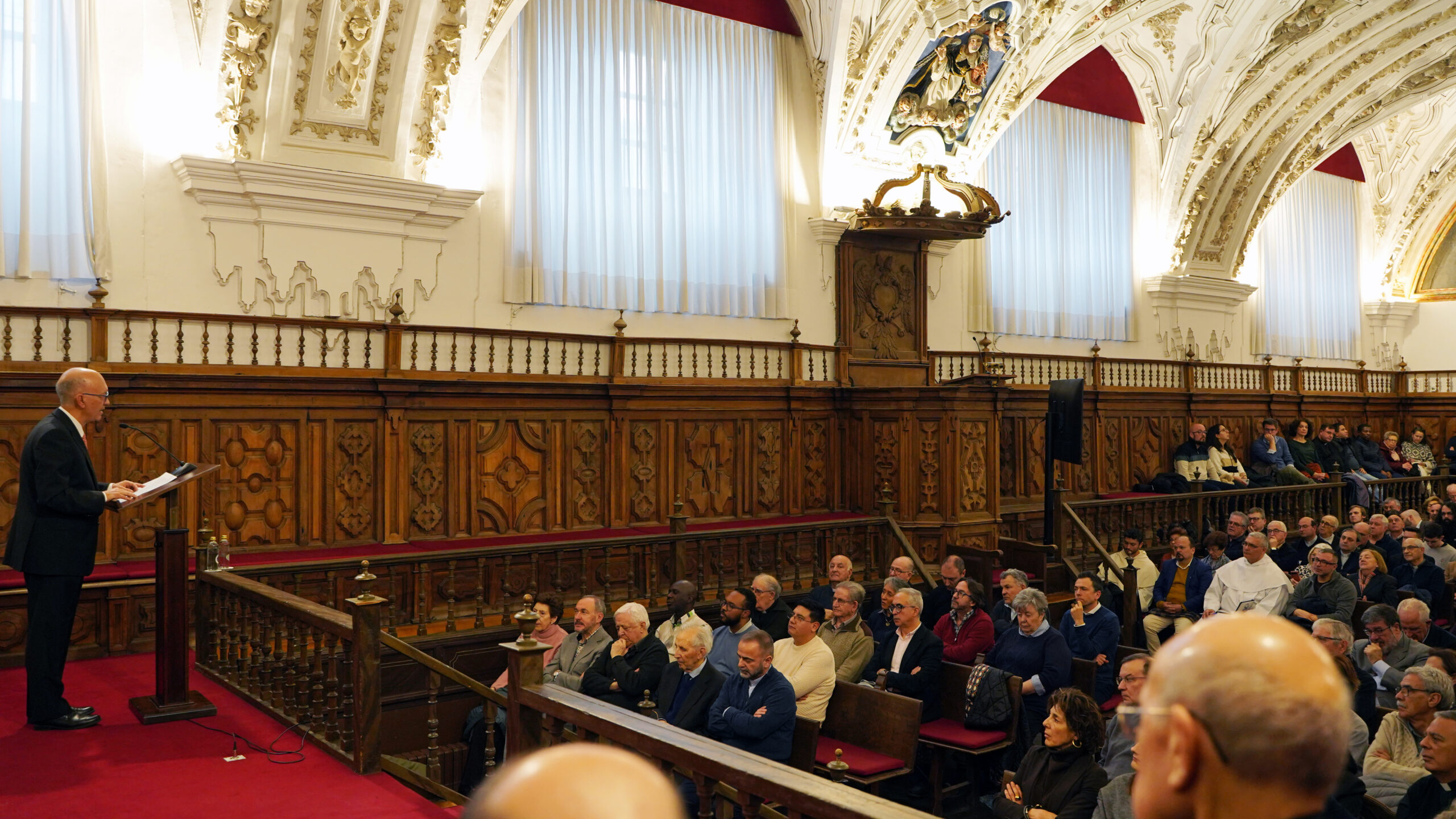 “Ha formado a formadores”, afirmó y prueba de ello es que muchos de sus alumnos enseñan en universidades y seminarios de distintos continentes. En ese retrato del maestro evocó también una imagen que el propio Guijarro señala con orgullo que es “hijo de pastelero”. Y comparó ese origen con su estilo de trabajar: precisión, paciencia, respeto por la tradición heredada y apertura a la innovación. Un trabajo artesanal que, añadió, lo ha vinculado profundamente “al hijo de otro artesano, al hijo del carpintero, un galileo”, a quien se ha empeñado en conocer y en darnos a conocer, y del que ha aprendido a “tener una puerta abierta, un oído atento y unas palabras de aliento para quienes las necesitábamos”.