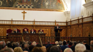 Cuando tomó la palabra, tras la laudatio de la profesora Carmen Yebra, el profesor Guijarro anunció el título de su última lección —“Volver a Galilea para ver a Jesús”— y explicó que no seguiría “los saludos protocolarios”. Prefirió comenzar agradeciendo de modo especial la presencia de quienes fueron sus profesores: Olegario González de Cardedal y el cardenal emérito Ricardo Blázquez, de quienes aprendió lo que después ha desarrollado en su trayectoria académica.