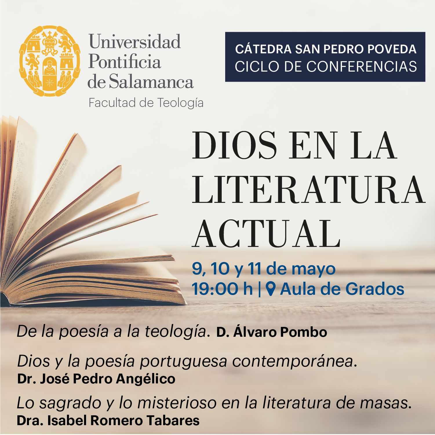 La Cátedra San Pedro Poveda de la Facultad de Teología de la Universidad Pontificia de Salamanca (UPSA) organiza un ciclo de tres conferencias sobre “Dios en la literatura actual”, en el que se reflexionará sobre quién es Dios y qué significa para el ser humano a partir de una mirada literaria. Las ponencias tendrán lugar del 9 al 11 de mayo, a las 19:00 horas en el Aula de Grados de la UPSA.