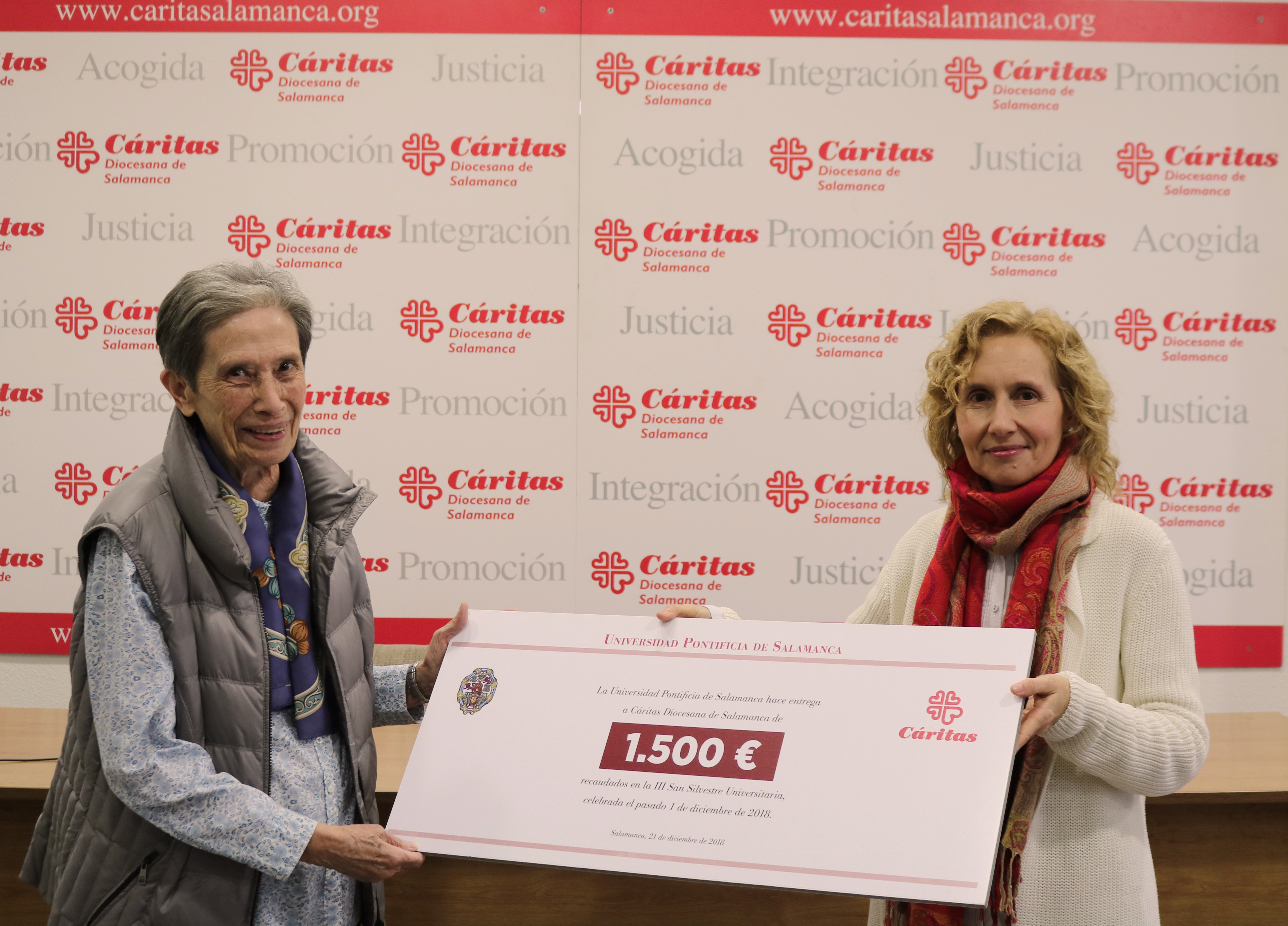La Universidad Pontificia de Salamanca ha entregado a Cáritas Diocesana de Salamanca el dinero recaudado en la III San Silvestre Universitaria, organizada por el Servicio de Deportes. En el acto han estado presentes la presidenta de Cáritas, Carmen Calzada, la rectora, Mirian Cortés, el vicerrector de Relaciones Institucionales, Jacinto Núñez, y el secretario general de Cáritas, José Mª Rodríguez.