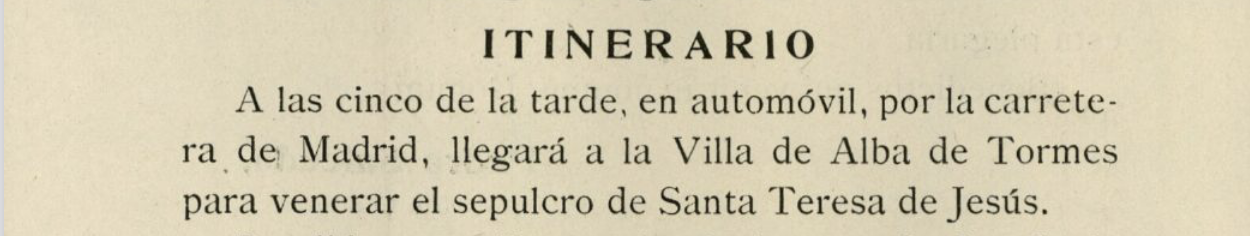 En esa misma se recoge que pasó el día en la villa ducal, en concreto, hasta las seis de la tarde que partía el tren a Salamanca. Según se relata, el pueblo albense esperaba al prelado desde la entrada del puente romano y hasta la iglesia de las Madres Carmelitas, “donde se veneran las reliquias de Santa Teresa, cuyo atrio interior estaba invadido de gente”. Al templo entró bajo palio, y después de besar el Lignum Crucis, con los acordes del órgano.
