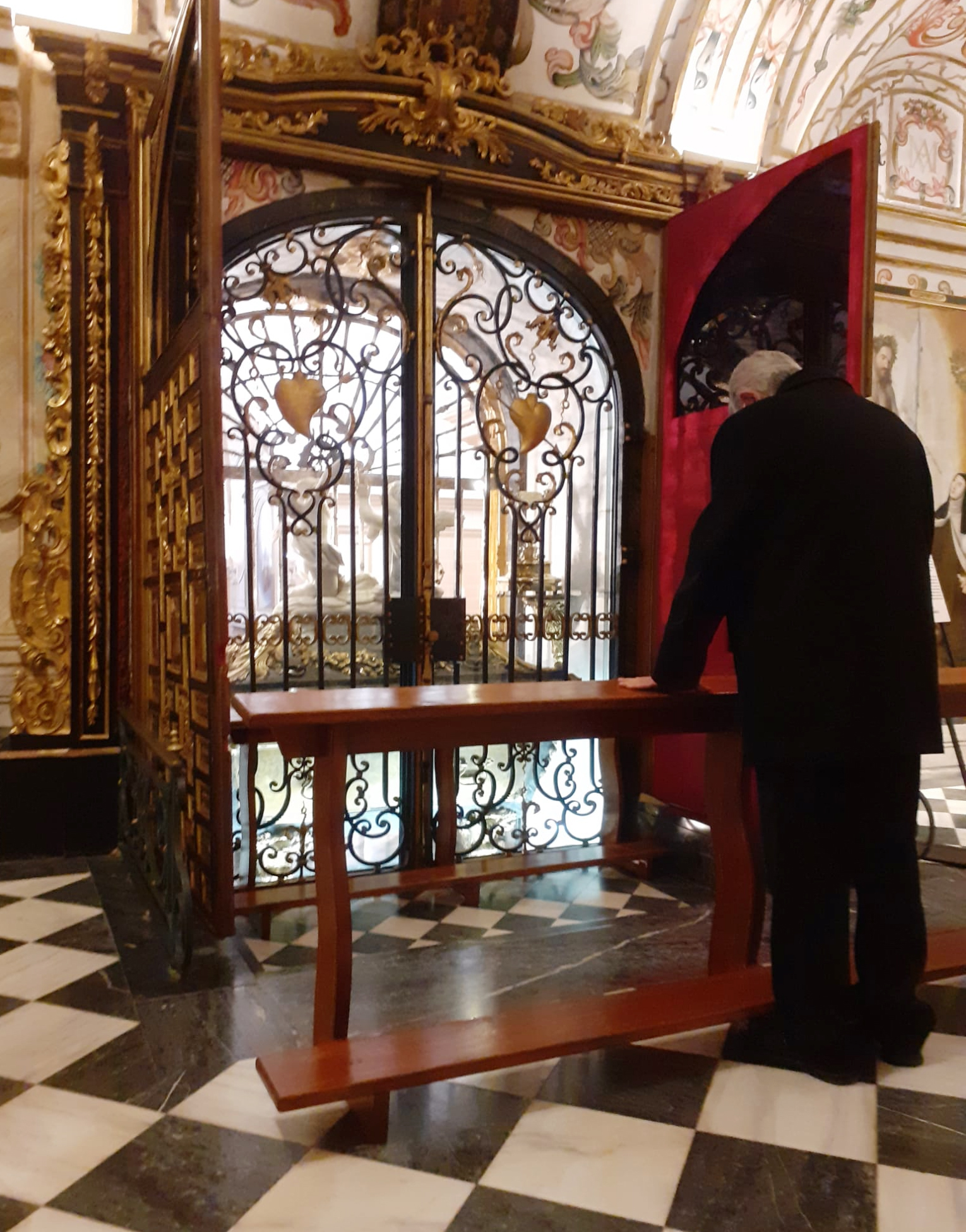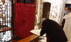 Este sacerdote recibió al prelado junto al diácono, Ciriaco García, y todos juntos se acercaron a la capilla del Monasterio de la Anunciación de las Madres Carmelitas Descalzas, “donde pudo hacer oración, primero ante el Santísimo Sacramento, y después, ante el sepulcro de Santa Teresa, patrona de la diócesis”, relata Vicente de Paz. El prior de los Carmelitas Descalzos, el P. Miguel Ángel, les acompañó en la visita, y fue explicando a Mons. José Luis Retana algunos de los lugares y objetos teresianos más importantes, “como la celda donde murió la Santa”, detalla el presbítero de Alba.