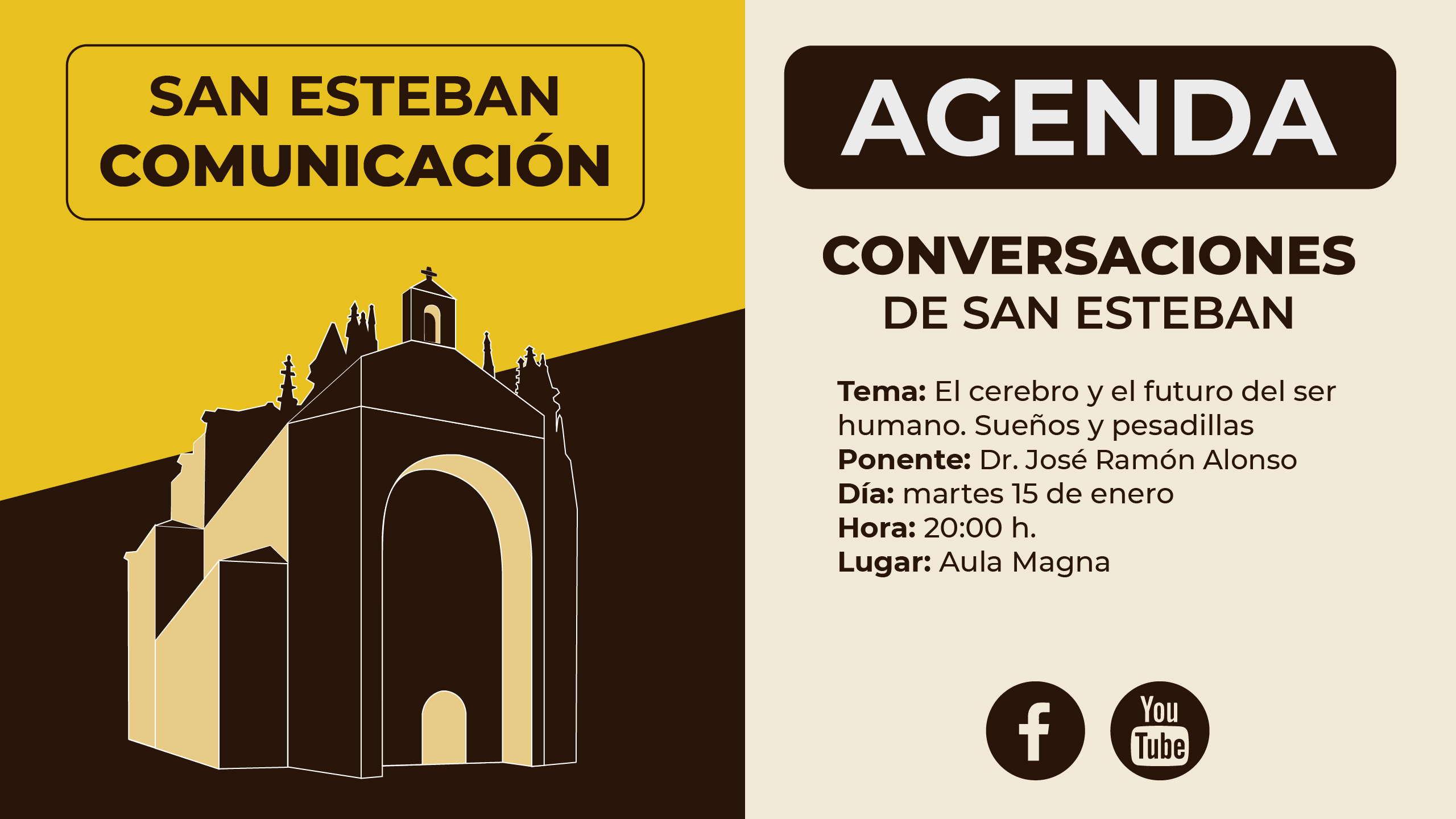 El 15 de enero se retomarán las actividades de las XLVII Conversaciones de San Esteban que este año están abordando el tema: “¿El final del Homo Sapiens?. Ciencia, tecnología y modificación de la naturaleza humana”. Ese día el profesor José Ramón Alonso impartirá la ponencia titulada: ‘El cerebro y el futuro del ser humano. Sueños y pesadillas’. El 22 de enero, el tema que ocupara el diálogo será ’El uso de los Big Data en salud: temor o esperanza’, y será abordado por el catedrático Jesús María Hernández Rivas. La última ponencia de enero, tendrá lugar el día 29 y correrá a cargo del informático David Rodrigo Merino, quien hablará de la ‘Tecnología de la información. Impacto y cambio en la vida y naturaleza humana’. Las conferencias tendrán lugar a las 20.00 h. en el Aula Magna del Convento de San Esteban.