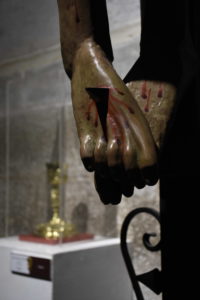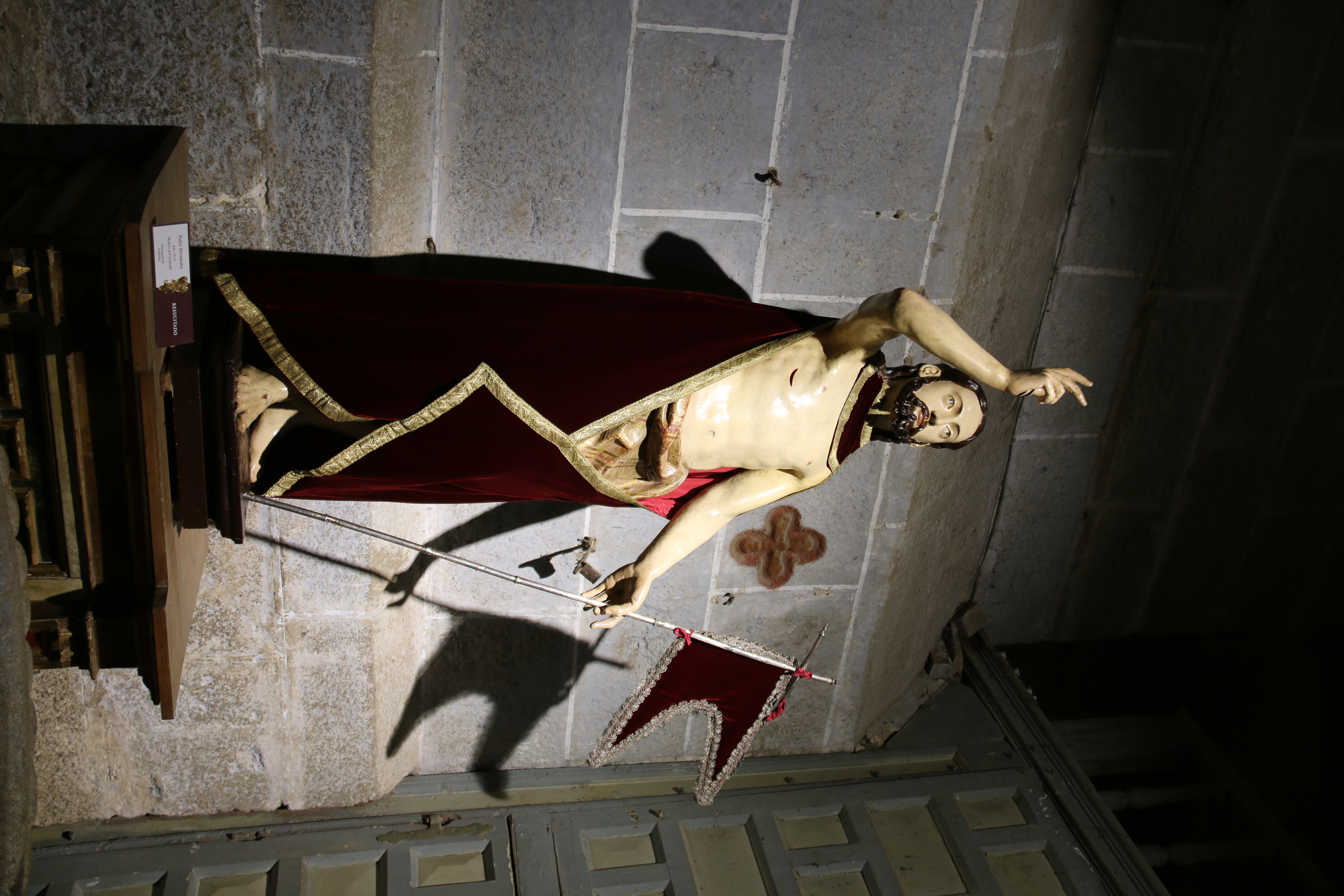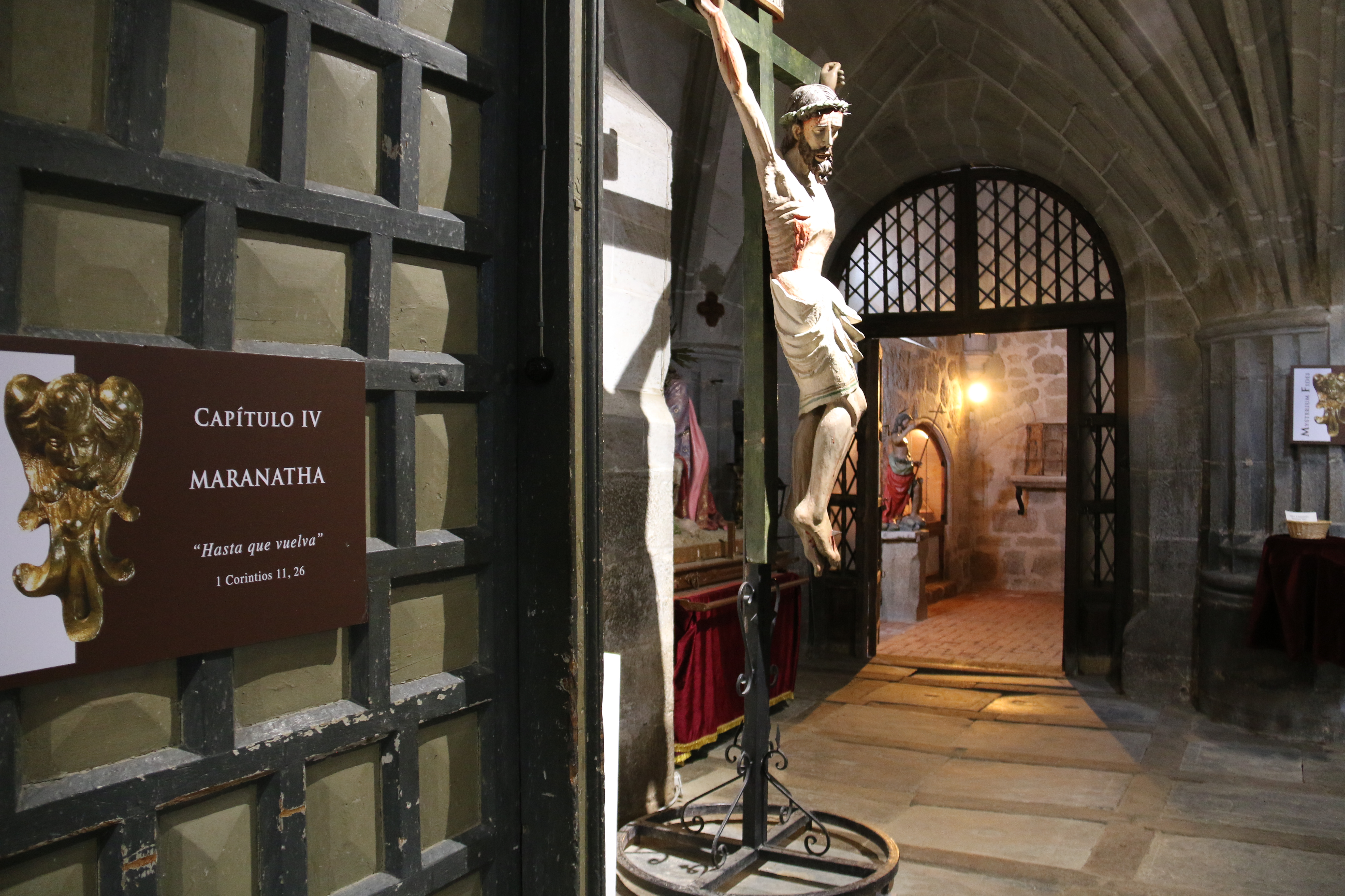 En el último de los capítulos, el cuarto, titulado ‘Maranatha’, que significa ‘El Señor viene’, se ha querido representar el ministerio del memorial de la Pasión de Cristo, “representado con el ministerio de la eucaristía”, apuntan los responsables de la muestra. El Cristo de las Aguas, del siglo XIV inicia esta parte de la muestra, en el que destaca su costado abierto, “por donde fluye la sangre y el agua. Junto a la talla se encuentra un cáliz barroco con todas las alegorías de la eucaristía. Y a escaso medio metro de esta imagen se encuentra la de un resucitado, del XVII, así como la imagen de San Juan de Sahagún, patrono de la Diócesis de Salamanca y que pasó por Ledesma a predicar un jueves de Corpus. La última pieza del recorrido de la exposición es un cuadro, el del apocalipsis, “donde se representa todo lo que tiene que ver con el sentido escatológico”.