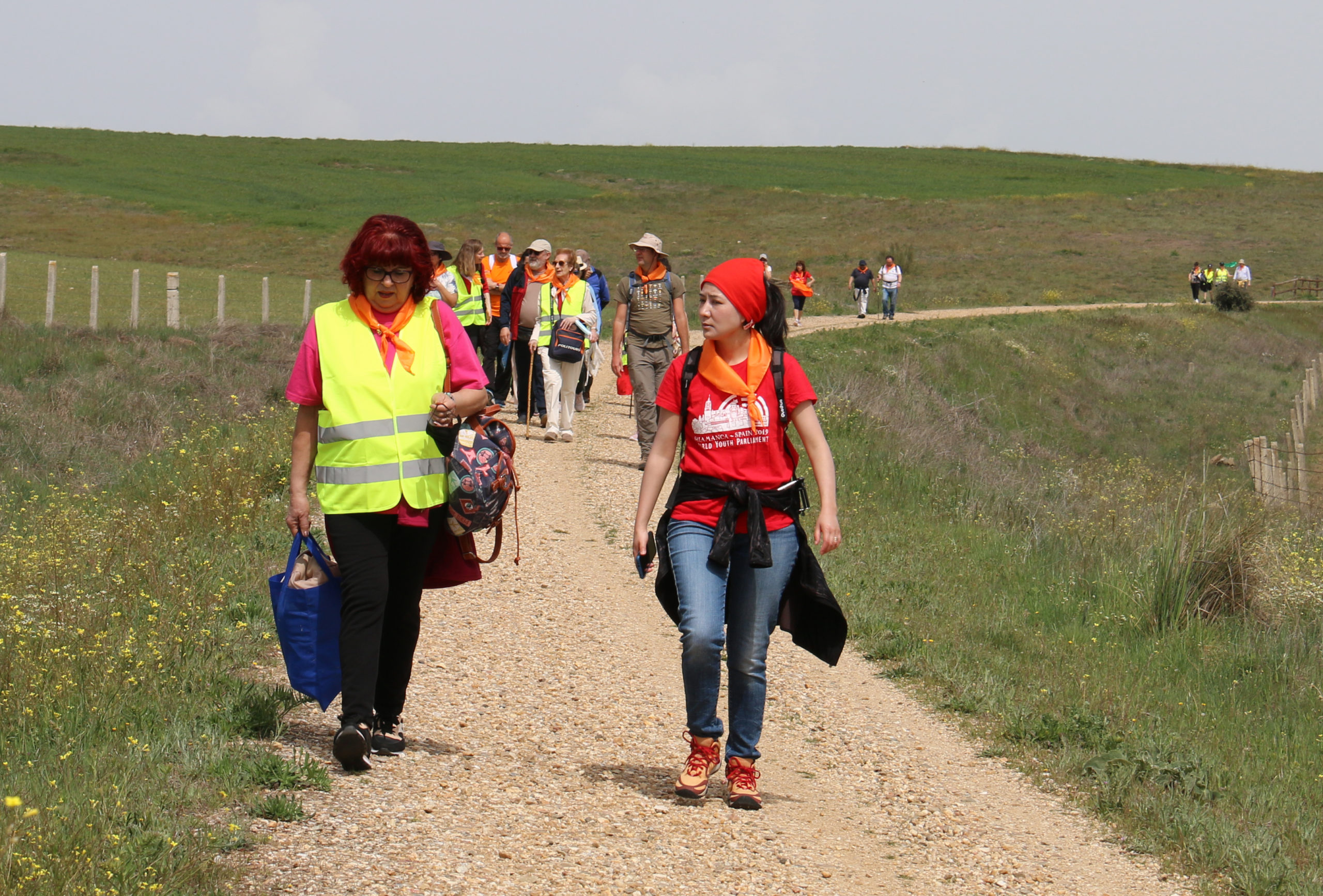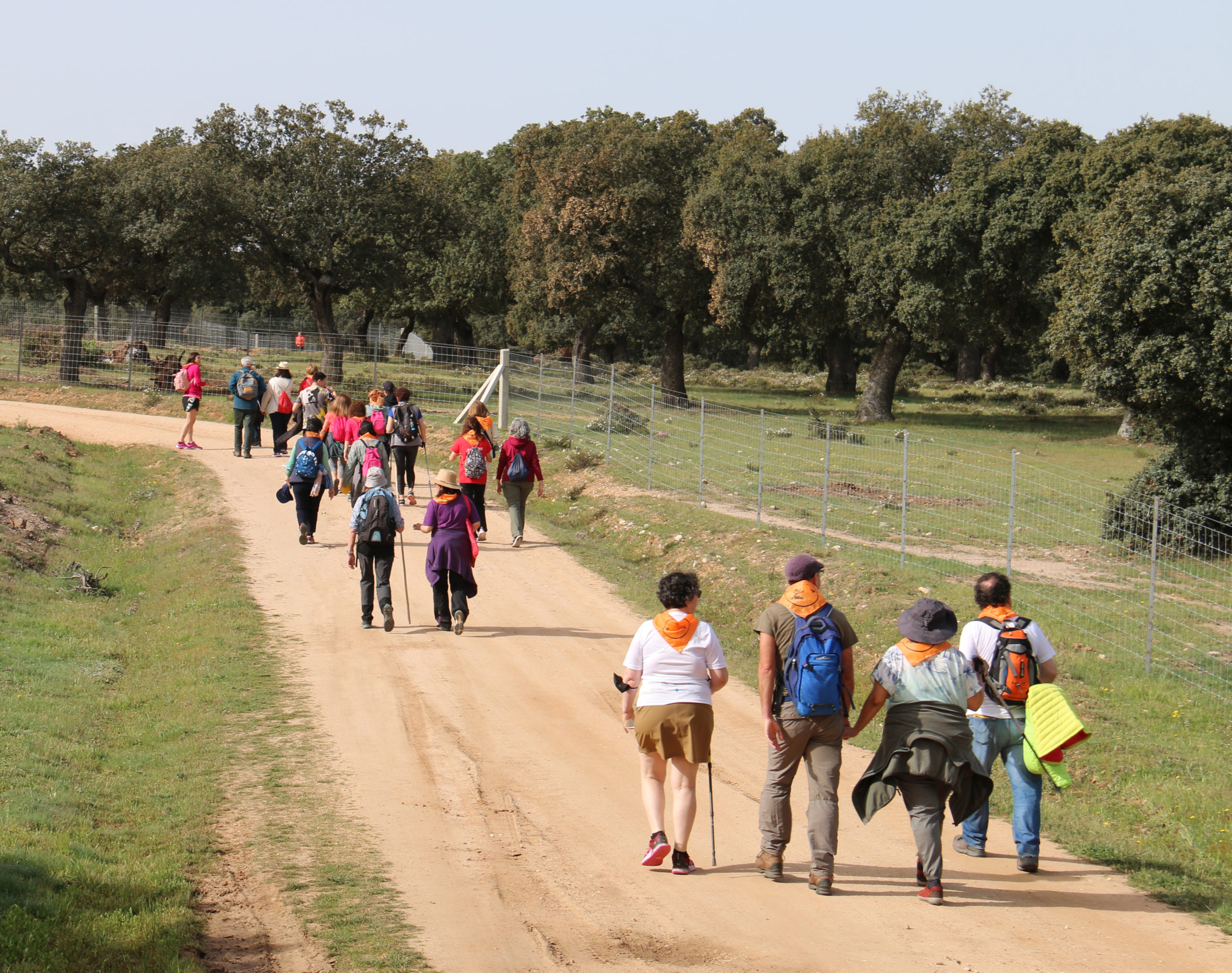 El primer grupo, de unas cuarenta personas, partió en autocar del aparcamiento de Las Bernardas, en Salamanca, a las nueve y media de la mañana en dirección a El Encinar, donde comenzaron a caminar. Para vivir momentos de reflexión a lo largo del trayecto, entre paisajes de encinas, se lanzaron varias propuestas impresas en un folio repartido a todos.