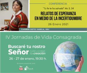 Así, Carmen Soto ofrecerá el 26 de enero la primera ponencia, titulada: “Relatos de esperanza en medio de la incertidumbre”. Esta sierva de San José es miembro de la Asociación de Teólogas Españolas, de la Asociación Bíblica Española, y del Consejo de Redacción de las revistas Encrucillada y Reseña Bíblica. (Puedes acceder desde aquí).