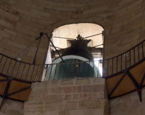 En la sala de campanas hay un total de 13, que como describe Benito, se han utilizado a lo largo del tiempo, “sobre todo para la llamada a la oración, que es el elemento que los cristianos utilizamos antes de la celebración”. Además, insiste en que las campanas han sido utilizadas también para una función civil, y existe un documento en el archivo de la Catedral que lo constata. En concreto, se trata de una de las actas capitulares, del 10 de septiembre de 1378, “en el que el Cabildo le dice a uno de los canónicos que ofrezca todo lo necesario para la provisión del reloj, para marcar las horas con la campana”.