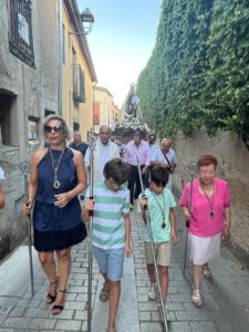 Ese mismo día por la tarde tendrá lugar otro de los momentos más esperados: la tradicional bajada de la Virgen desde la iglesia hasta su ermita, que se llevará a cabo tras el rezo del rosario, a las 20:00 horas. Se trata de un acto multitudinario, que según explica este joven vecino de la villa, “es el acontecimiento religioso con mayor afluencia. La mayoría de los años acude en torno a un millar de personas”. Al llegar a la ermita, los fieles expresan su devoción acercándose a la imagen de Nuestra Señora del Carmen “para besar su manto o sus cintas”, una práctica muy arraigada entre los ledesminos.