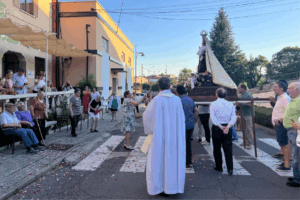 La comunidad parroquial de Ledesma celebró este miércoles, 16 de julio, la fiesta en honor a su patrona, la Virgen del Carmen, con el rezo de la novena, la santa misa en la iglesia de Santa María la Mayor y una procesión extraordinaria que llevó la imagen hasta las dos residencias del municipio. Con este gesto, enmarcado en el Año Santo del Jubileo de la Esperanza 2025, se quiso acercar la presencia de la Virgen a los mayores, para que pudieran contemplarla y encomendarse a ella. El párroco, Miguel Martín Yuste, señaló que nunca antes se había realizado este recorrido y que nació del deseo de que la Virgen visitara a quienes tanto la quieren.