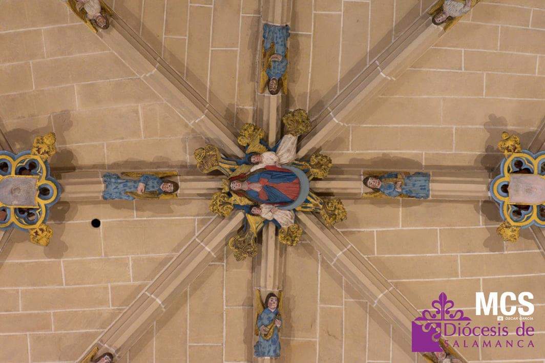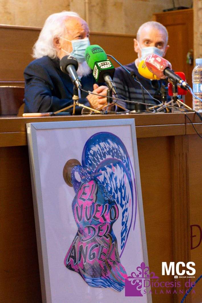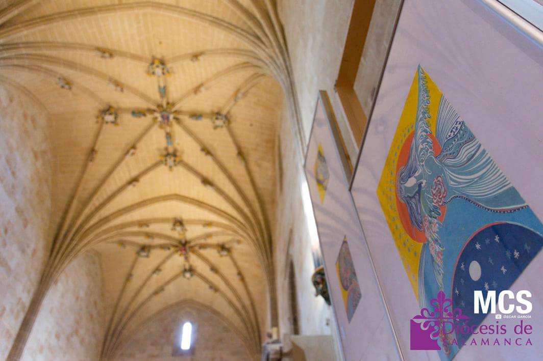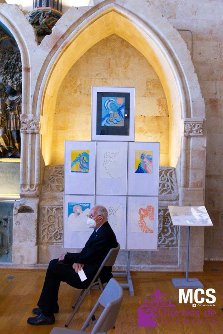 El lugar elegido para la exposición, la capilla de Santa Catalina, no es casual. “Ésta es la capilla de los ángeles de la Catedral de Salamanca”, afirma Tomás Gil. Para entender este calificativo “hay que levantar la mirada hacia arriba, hacia las bóvedas. En los nervios de las bóvedas están representados los ángeles interpretando música, cantando la Gloria de Dios en su Hijo Jesucristo, en Santa María Virgen y en Santa Catalina, que son las claves de estas bóvedas”, explicaba el responsable del Servicio de Patrimonio artístico de la Diócesis de Salamanca. “Estos ángeles realizados a finales del siglo XV entran perfectamente en diálogo y en contrapunto con los ángeles de Díaz-Castilla del siglo XXI”, afirma.