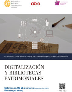 La Universidad Pontificia de Salamanca acoge del 23 al 25 de marzo las Jornadas ‘Digitalización y Bibliotecas Patrimoniales’, que organiza la Asociación de Bibliotecarios de la Iglesia en España (ABIE), en colaboración con la UPSA, y al que se han dado cita numerosos profesionales de bibliotecas y centros de documentación eclesiásticos. Durante dos días, expertos de bibliotecas públicas y privadas explicarán las tareas llevadas a cabo para la digitalización de sus fondos documentales y su aportación al patrimonio histórico y bibliográfico.