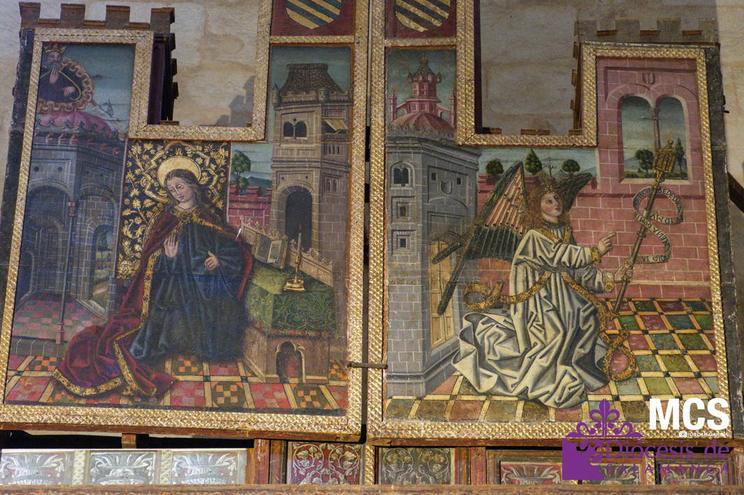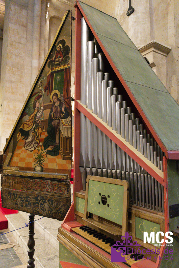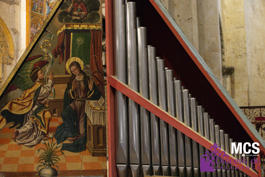 “En la actualidad no conserva material sonoro, ni los tubos, pero sí muchas partes mecánicas que nos pueden dar pistas de cómo debió de sonar y cuál era su funcionamiento cuando estaba al cien por cien de sus posibilidades”, matiza Alberto Moñivas. Este órgano tiene unas puertas que se abren y se cierran, donde está el hueco que ocuparían los tubos que no se han conservado. En cuanto a la representación iconográfica en sus puertas, se puede observar La Anunciación, “una imagen bastante recurrente en este tipo de órganos”, aclara, y el anuncio que hace el ángel Gabriel a la Virgen, “como el anuncio que hace el órgano cuando se abre y comienza a hablar, a emitir su sonido y su belleza”.