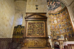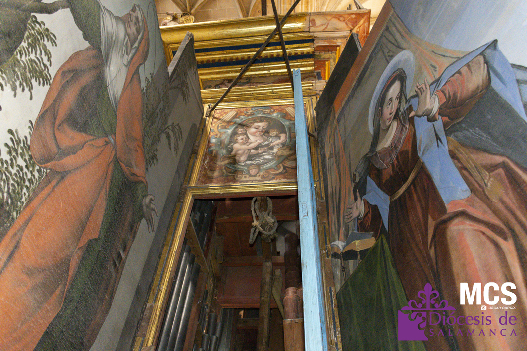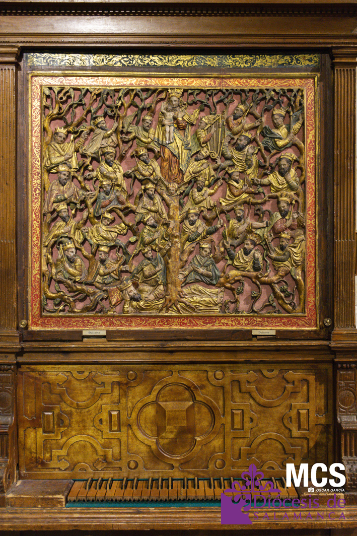 En cuanto a la iconografía, en el conocido como de Salinas está representado el tronco de Jessé, y dentro de la caja se pueden ver diferentes familias de tubos, “cada registro tiene una sonoridad“. En las puertas del órgano de ala está representado Jesús orando en el huerto de los olivos, y representa a los apóstoles que dormían mientras Jesús oraba, “representando que el órgano cuando está cerrado duerme, al igual que lo hacían ellos”, matiza Moñivas.