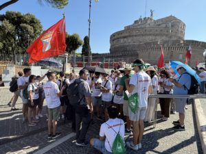 El punto de encuentro fue la Piazza Pia, situada entre el Castel Sant’Angelo y el inicio de la Via della Conciliazione. Allí, junto a miles de jóvenes procedentes de todo el mundo, comenzó la peregrinación con una oración comunitaria, que incluyó salmos, letanías y la lectura de la carta a los Romanos: “La esperanza no quedará defraudada, porque el amor de Dios ha sido derramado en nuestros corazones por el Espíritu Santo” (Rom 5,5).