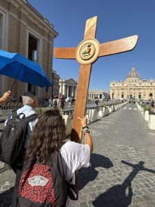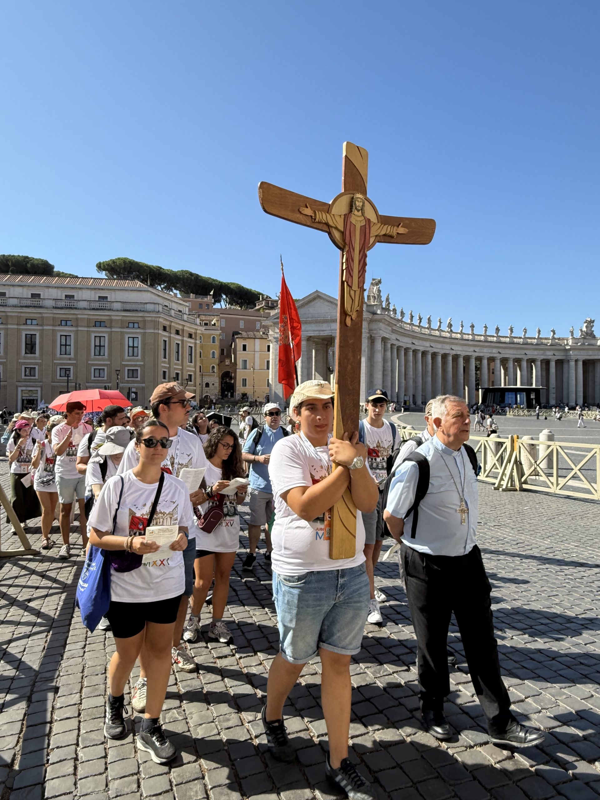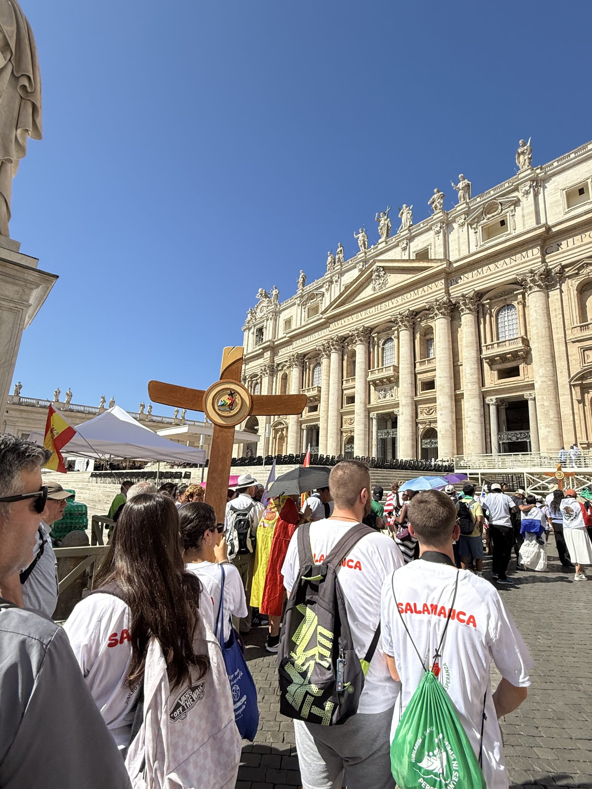 La cuarta jornada del Jubileo ha tenido como acto central el rito jubilar, que llevó al grupo de jóvenes de la Diócesis de Salamanca en peregrinación hasta la Puerta Santa de la basílica de San Pedro, portando la Cruz del Jubileo y acompañados por el obispo, Mons. José Luis Retana.