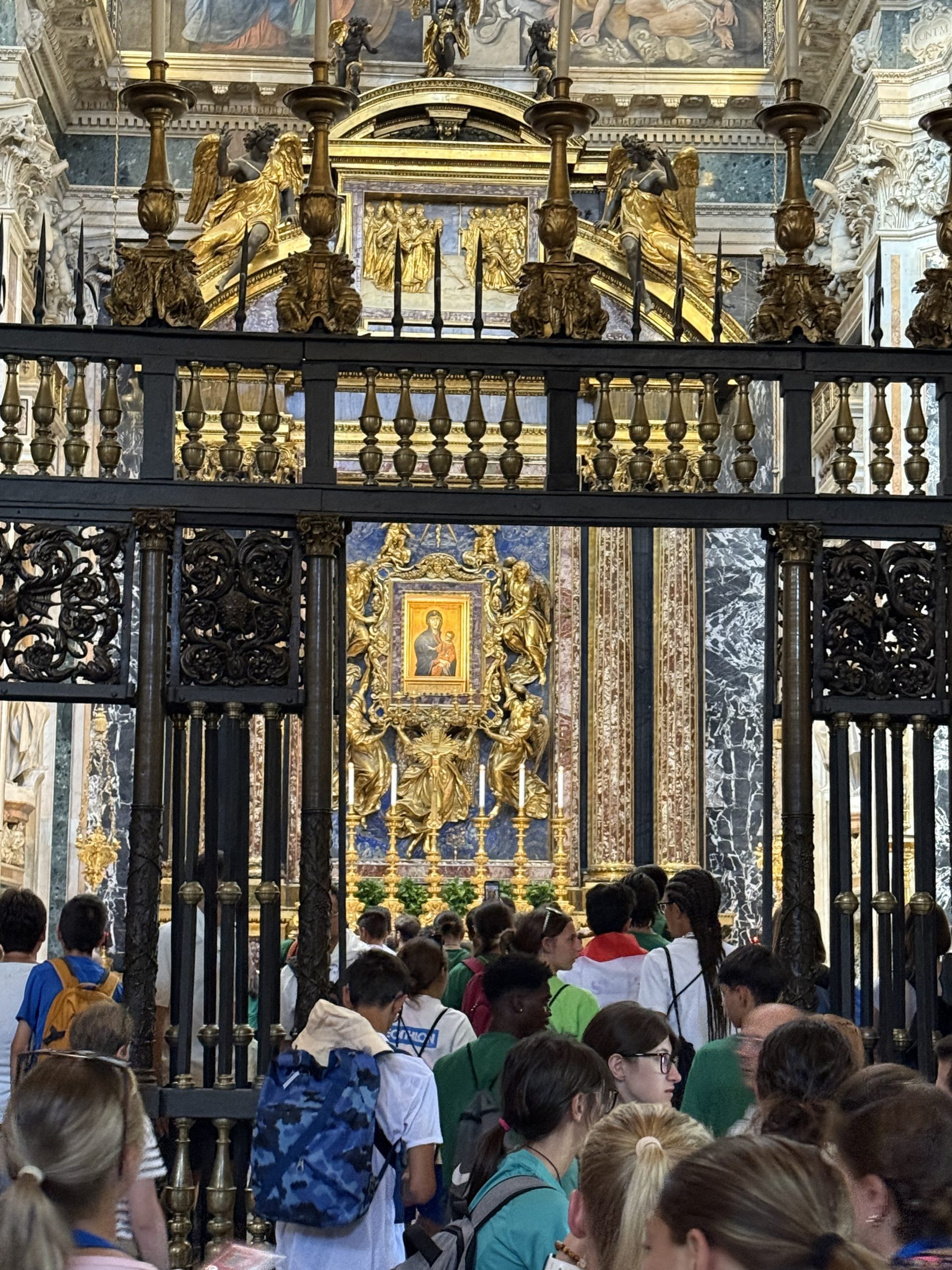 Antes de abandonar esta basílica jubilar, los jóvenes se detuvieron ante el icono de la Virgen María “Salus populi Romani”. Una imagen muy querida por el papa Francisco, que solía visitar antes de iniciar cada viaje apostólico para solicitarle protección y confiarle el fruto de su misión. En su capilla, el grupo de peregrinos vivió un momento de recogimiento y oración personal, en el que pusieron en manos de María sus intenciones.