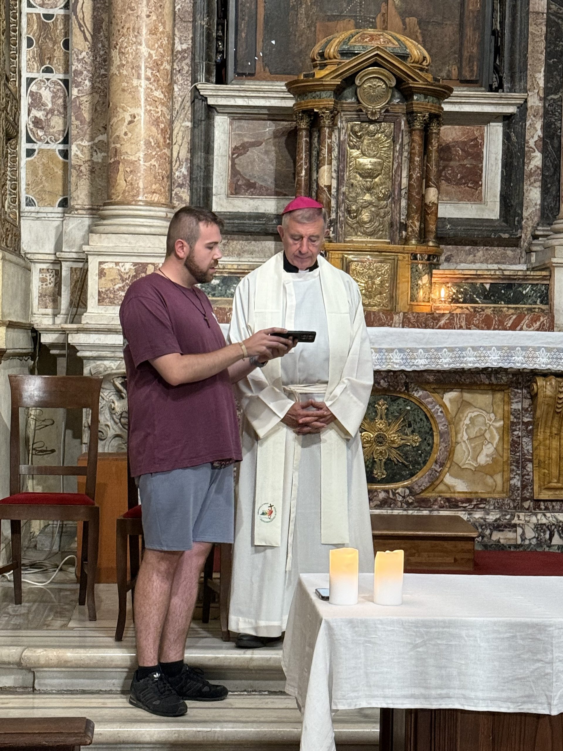 Después, el grupo se dirigió a la Basílica de Santa María la Mayor, una de las cuatro basílicas mayores de Roma. Allí atravesaron la Puerta Santa, signo visible del Jubileo, y se detuvieron en oración junto a la tumba del papa Francisco.