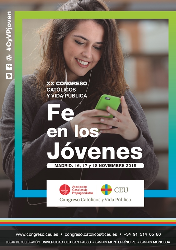 La Asociación Católica de Propagandistas y su obra la Fundación universitaria San Pablo-CEU organizan el XX Congreso Católicos y Vida Pública, que tendrá lugar los días 16, 17 y 18 de noviembre en los campus Montepríncipe y Moncloa de la Universidad CEU San Pablo de Madrid, con el título: “Fe en los jóvenes”.