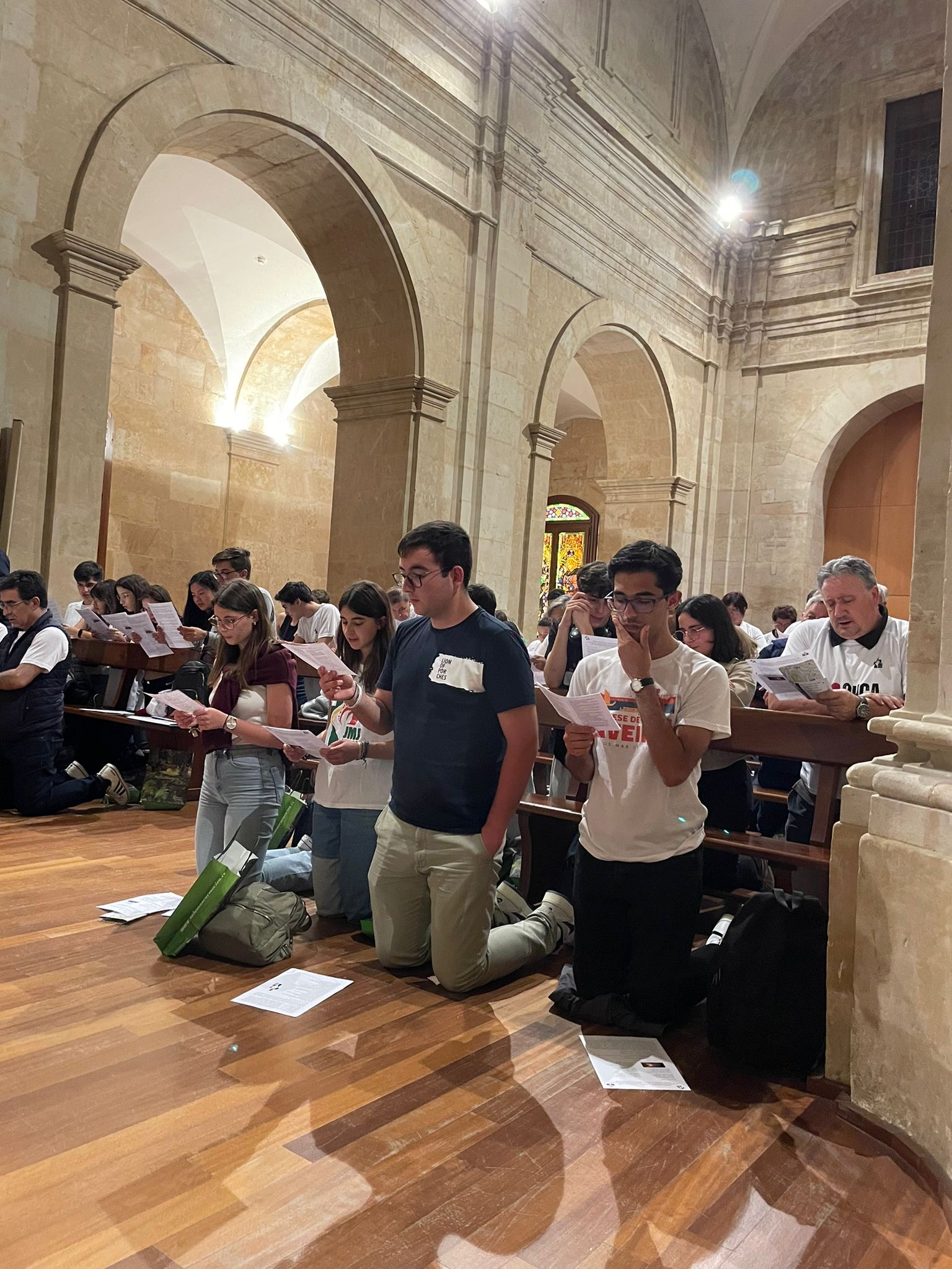 A su llegada, fueron acogidos en la Casa de la Iglesia por los jóvenes españoles y un cartel donde se podía leer en portugués: Bem-Vindos (Bienvenidos). Esa misa noche, participaron todos juntos en una oración en ambos idiomas en la capilla mayor de la Casa de la Iglesia, con un acción de gracias por lo vivido el pasado verano.
