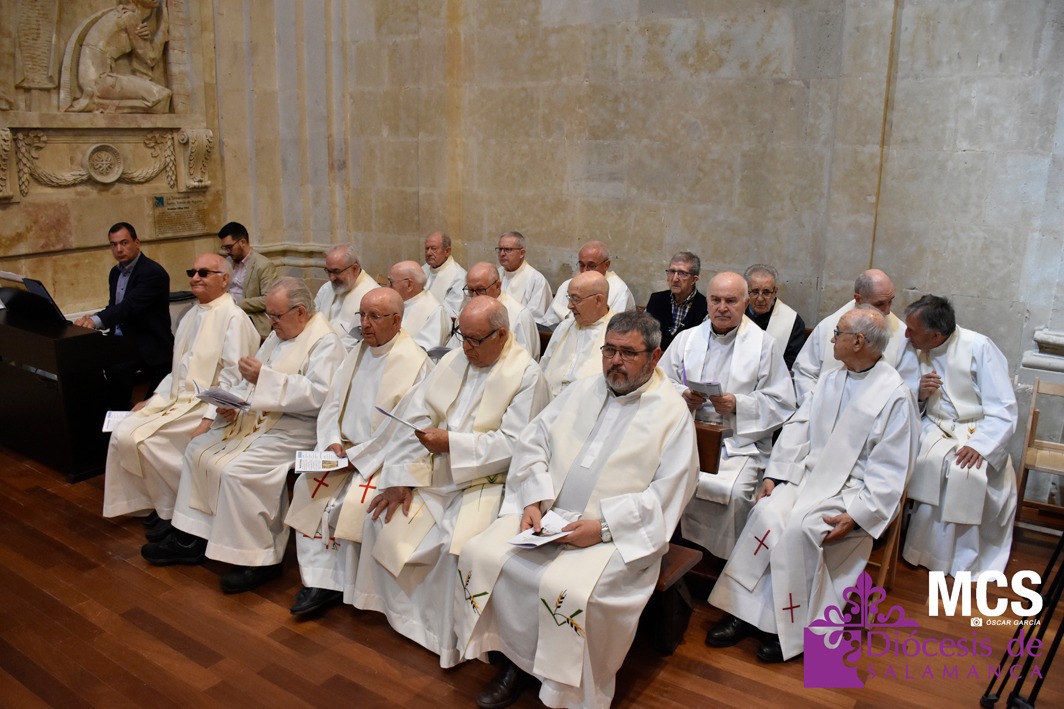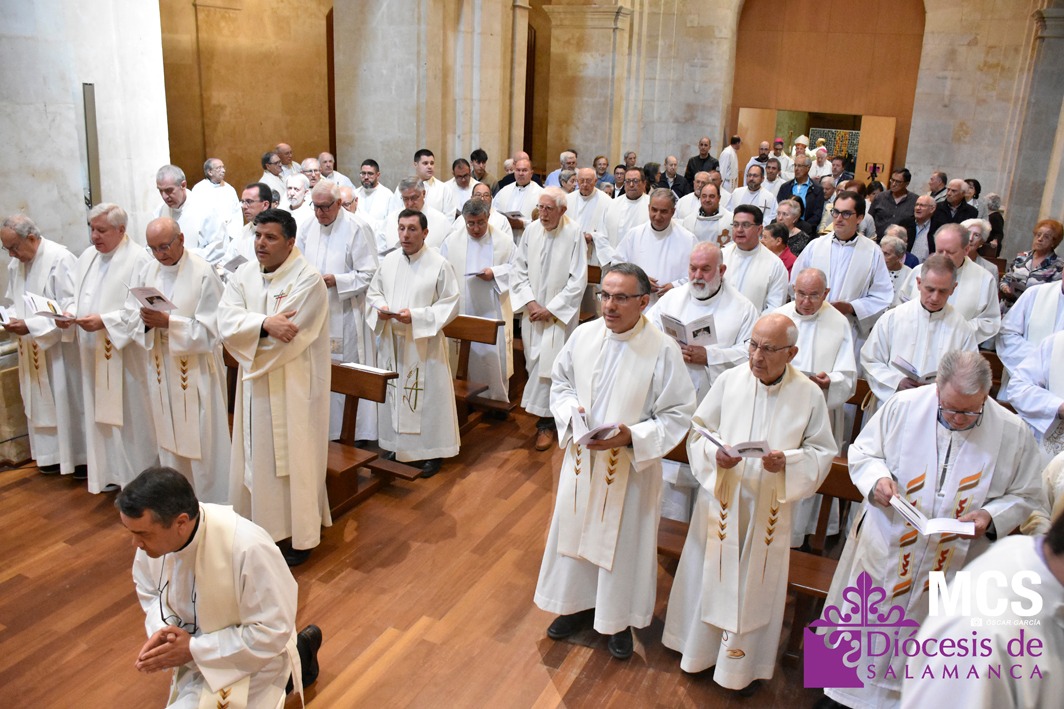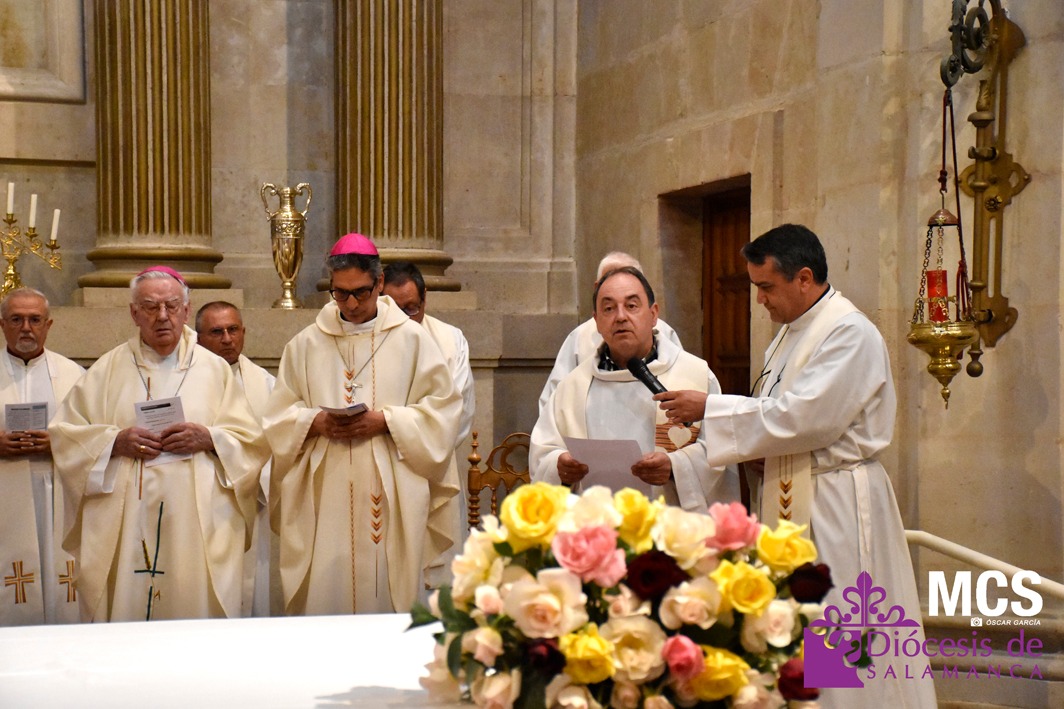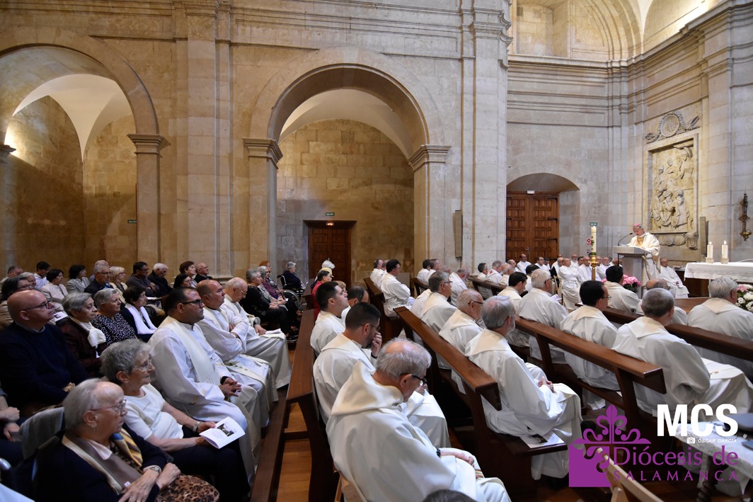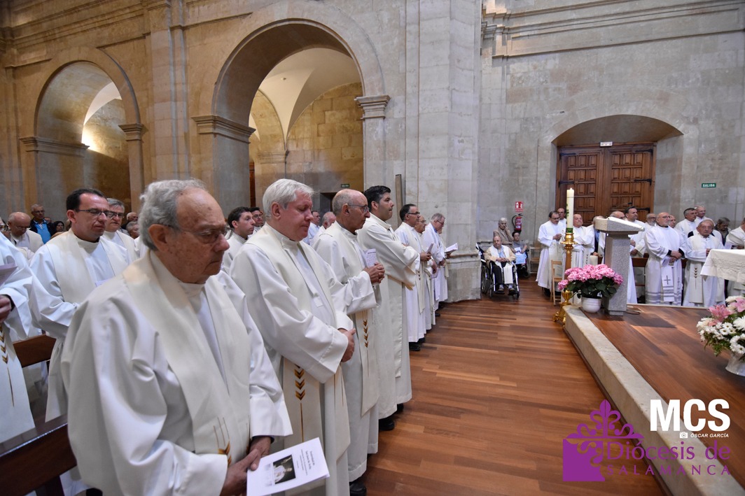 El obispo también se dirigió a los sacerdotes que celebran sus bodas de plata y oro en el ministerio: “Cada uno de vosotros sois hechura de las manos de Dios, que con su gracia ha ido tejiendo en vosotros una vida al servicio de aquellos a los que habéis sido enviados”. Para el pastor de la Diócesis de Salamanca, son el reflejo “de una creatividad del Espíritu y de la misión de la Iglesia, en la que habéis ejercido el ministerio”.