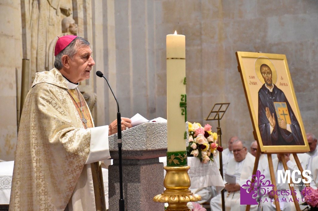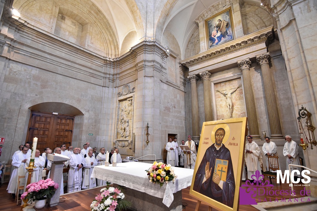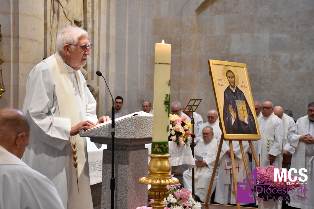 El clero diocesano se ha reunido en torno a su patrón, San Juan de Ávila, en el día de su festividad. Este día se dedica de forma especial a los sacerdotes que cumplen los 25 y 50 años de ministerio, que fueron ordenados en 1998 y 1973, respectivamente. En esta ocasión son ocho, cuatro de oro: Joaquín Tapia, Amado Mateos, Luis Ignacio Durán y Domingo Montero; y otros tantos de plata: Miguel Martín Yuste, Jorge García, José Luis Miguel (Jerry) y Carlos Arnanz.