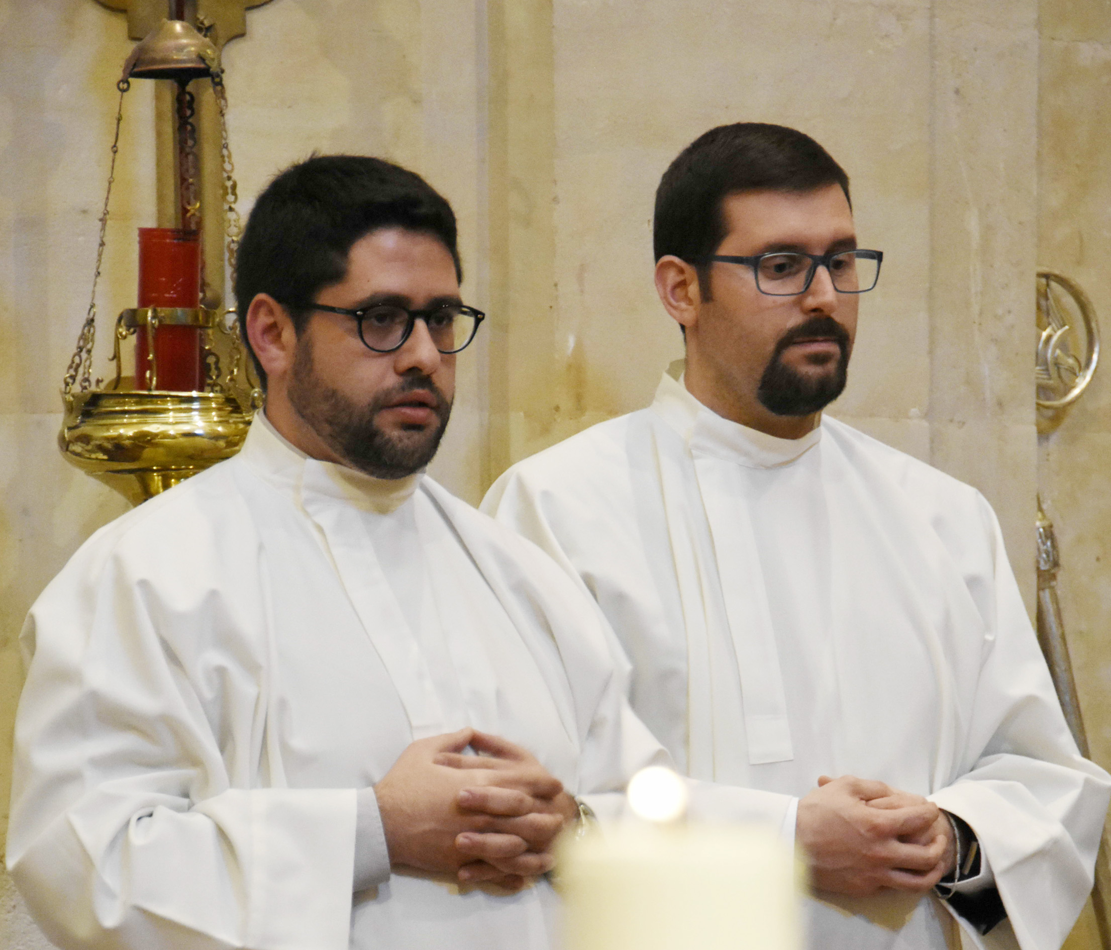 Los ministerios de lector y acólito son conferidos a los seminaristas que cursan los últimos años de formación en su camino de formación hacia el sacerdocio, y están dedicados a un servicio específico a la Palabra y al Altar, respectivamente. Alfonso y Ciriaco son estudiantes de quinto de Teología en la Universidad Pontificia de Salamanca. Los fines de semana, Alfonso colabora en la catequesis y en la pastoral de la parroquia de San Pedro Apóstol, en Alba de Tormes y Ciriaco, en la parroquia de Santa María, en Ledesma.