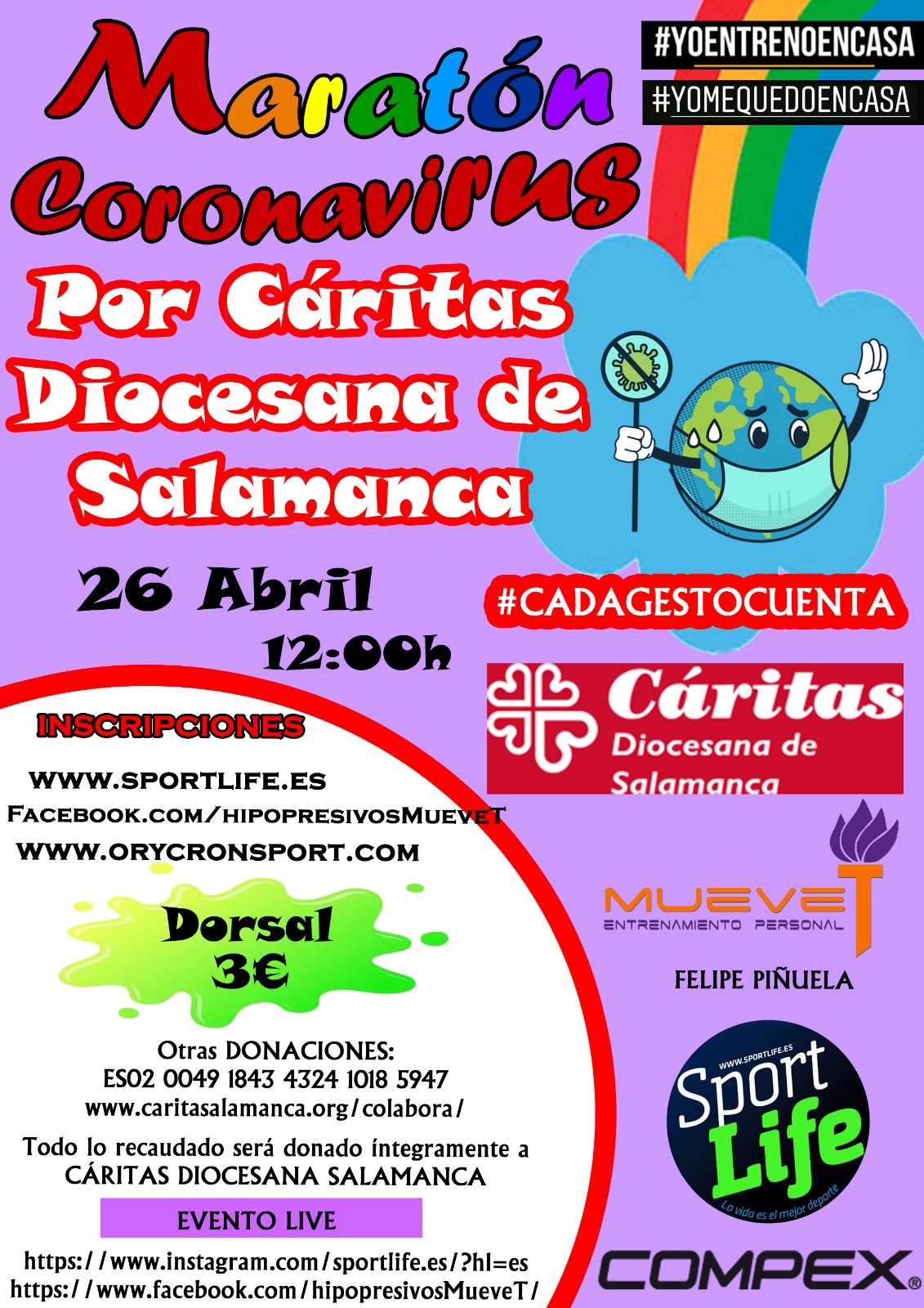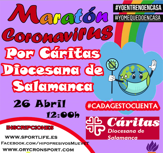 Quienes deseen participar en la ‘Maratón coronavirus”, pueden obtener el dorsal a través de la página www.orycronsport.com y descargar el plan de ejercicios que ha diseñado Felipe Piñuela. La aportación para el dorsal es de 3€. Además, la revista nacional “Sport life” sorteará 100 suscripciones entre todos los participantes, Compex España una fit y la deportista Dori Ruano sorteará su maillot de Campeona del Mundo de Ciclismo en pista, que ganó en 1998 en Burdeos (Francia).