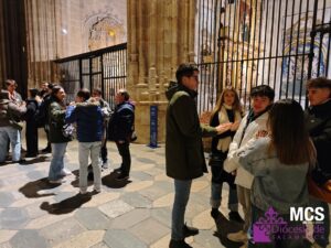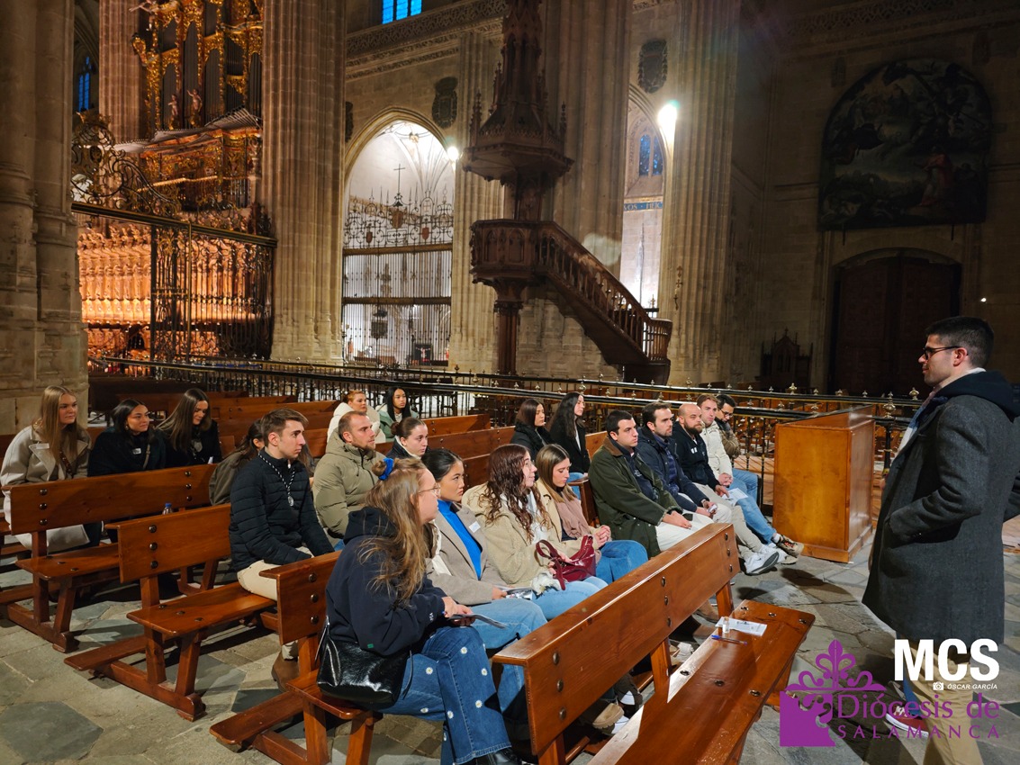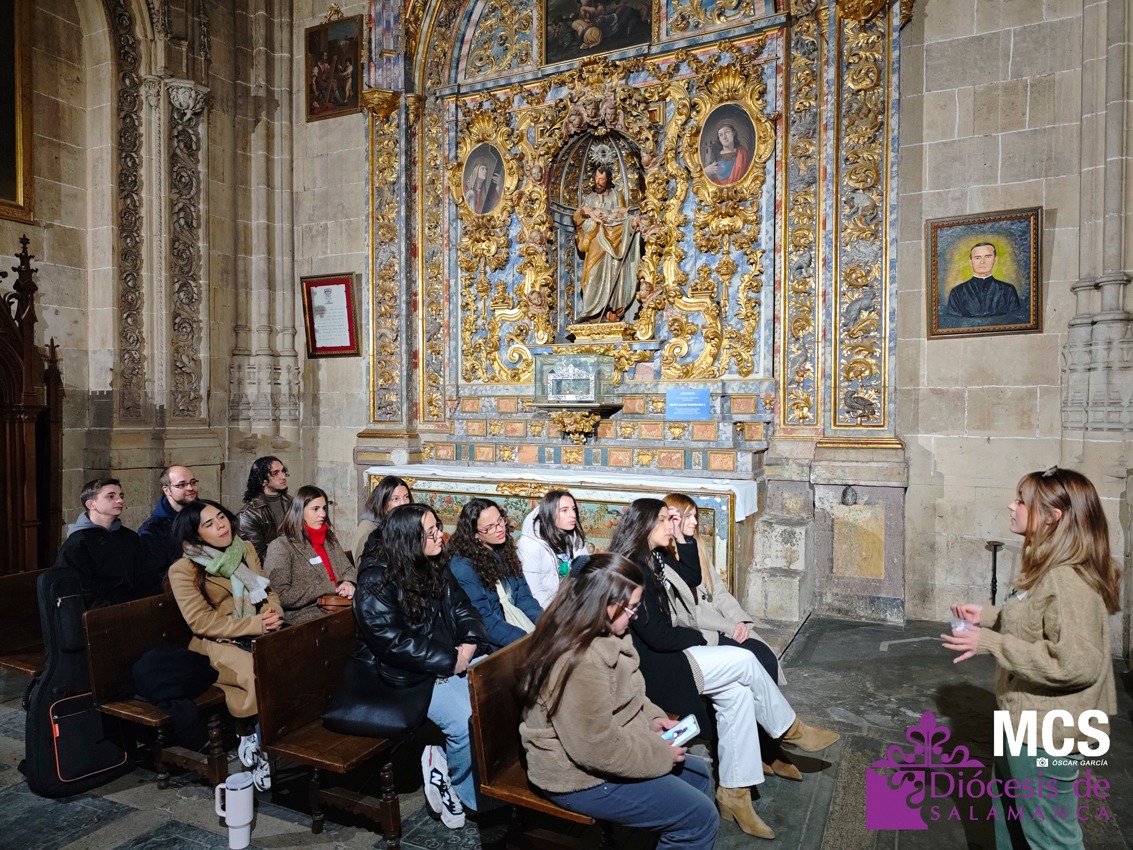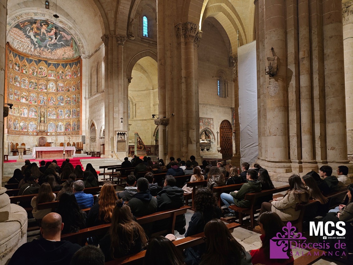 Tras la subida al casco histórico, el grupo llegó a la Catedral Vieja para un gesto centrado en la Confirmación. En un ambiente de silencio y oración, el delegado de Pastoral Juvenil invitó a los jóvenes a reconocer la presencia del Espíritu en su vida y a pedir los dones que necesitan en este momento: sabiduría, entendimiento, consejo, fortaleza, ciencia, piedad y temor de Dios —como respeto confiado—. Muchos levantaron la mano como signo de petición, un gesto sencillo y profundo que dejó ver la acogida interior del momento.
