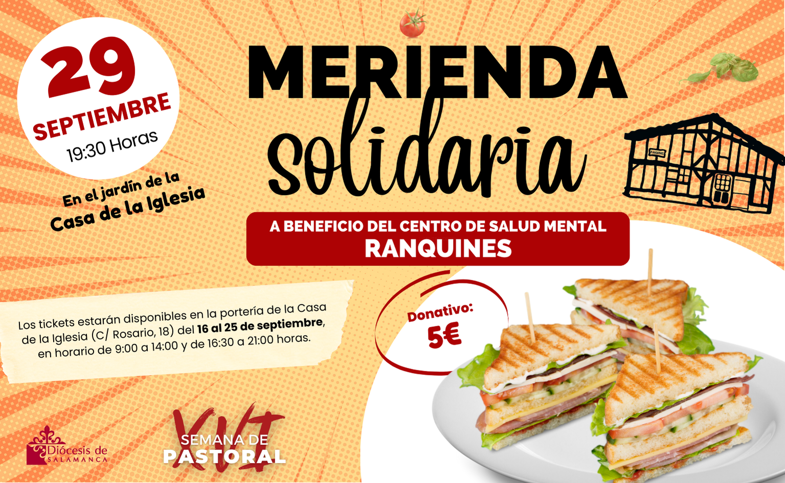 La XVI Semana de Pastoral de la Diócesis de Salamanca contará con un gesto solidario para apoyar al Centro de Salud Mental “Ranquines”, de Cáritas diocesana, un proyecto impulsado por la Iglesia de Salamanca tras la Asamblea diocesana que pronto celebrará su séptimo aniversario. La iniciativa consistirá en una merienda solidaria el domingo, 29 de septiembre, a las 19:30 horas en el jardín de la Casa de la Iglesia.