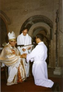 Se ordenó en la Catedral de Salamanca el 3 de mayo de 1998, con 27 años, de manos de Mons. Braulio Rodríguez, junto a Jorge García. “Fue un día bonito, aunque casi no lo vive”, reconoce. Miguel Martín Yuste evoca con cariño cómo vino a su ordenación un grupo de la comunidad parroquial de Alba. De ese día revive algunos detalles, y personas: “Don Alipio Ruiz me revistió y don José Adolfo Sánchez me hizo la casulla”. Los dos habían sido párrocos de su pueblo natal, Cespedosa de Tormes.