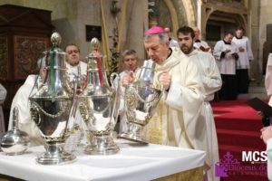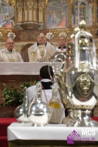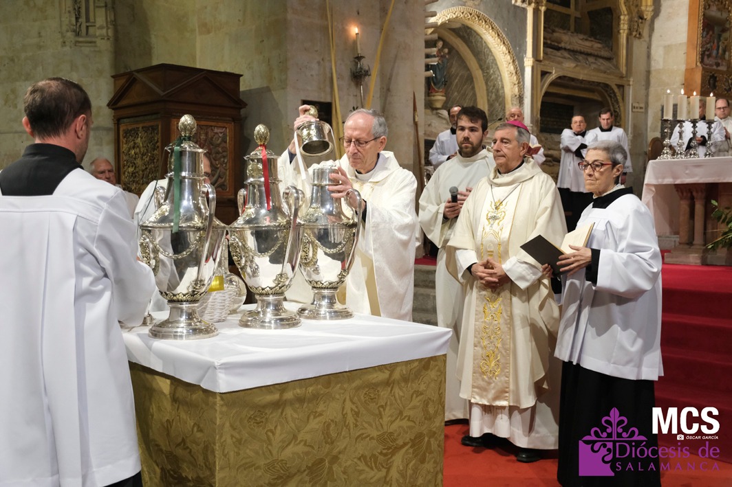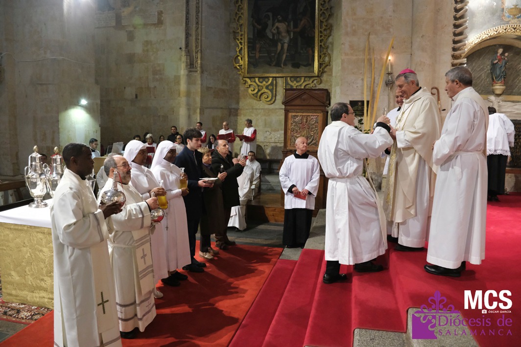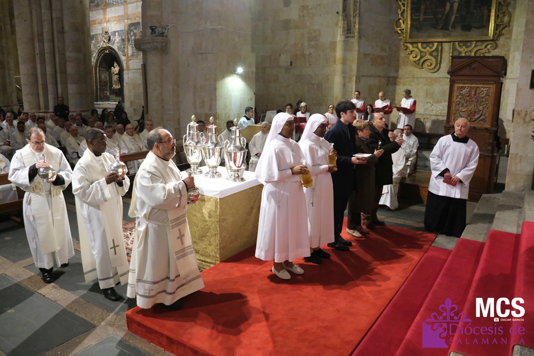 En esta liturgia, signo de comunión eclesial, los presbíteros han renovado públicamente sus promesas sacerdotales y se han bendecido los óleos de los catecúmenos y de los enfermos, así como el santo crisma, que se utilizarán en la administración de los sacramentos a lo largo del año.